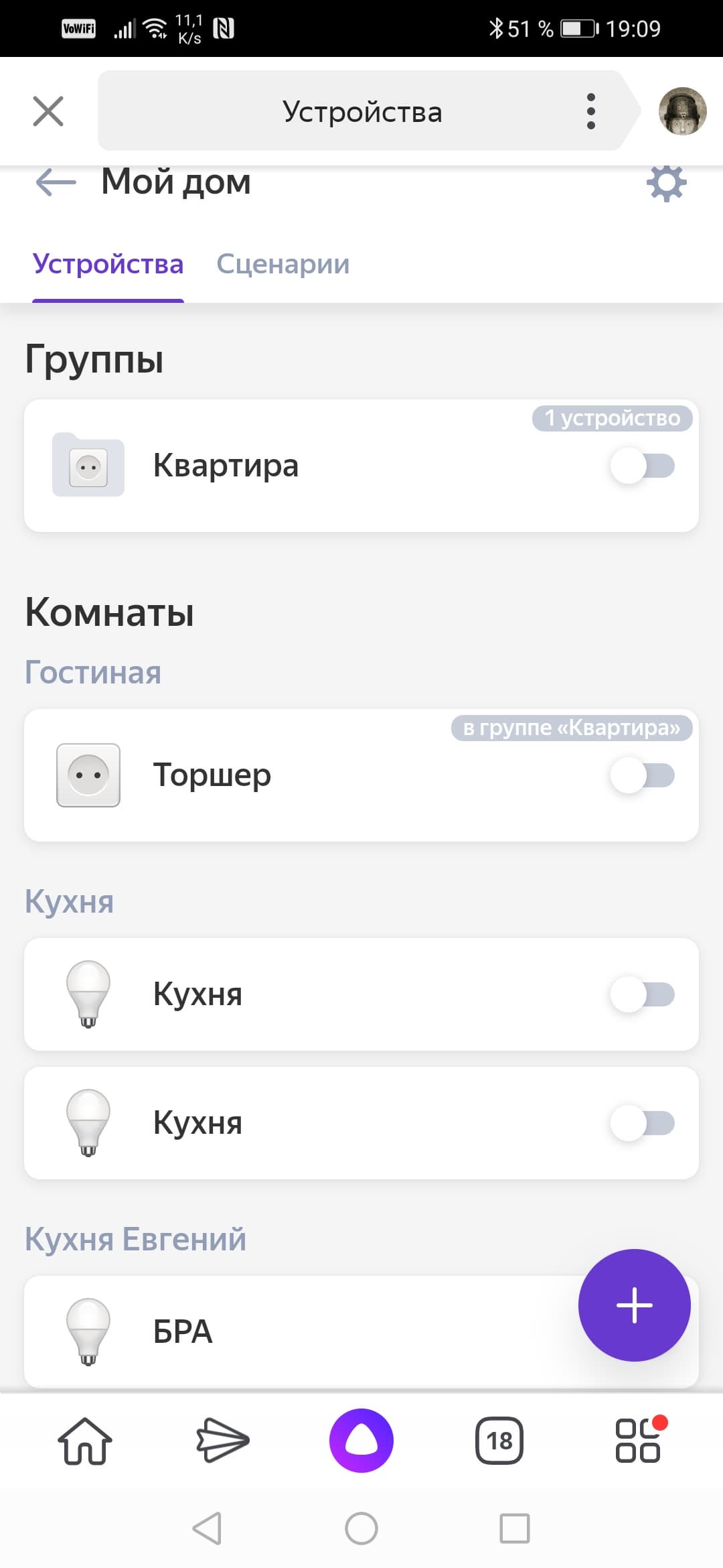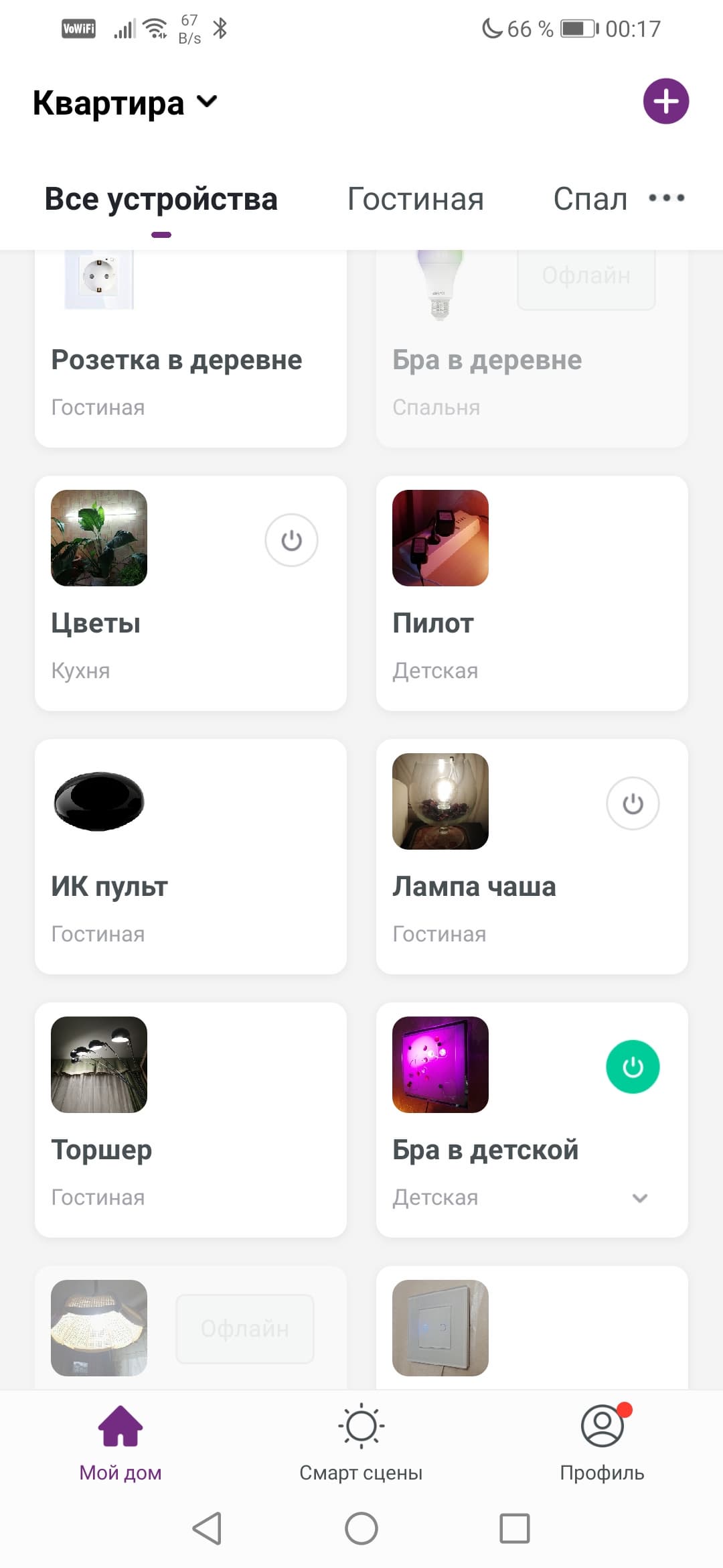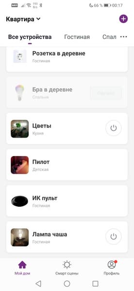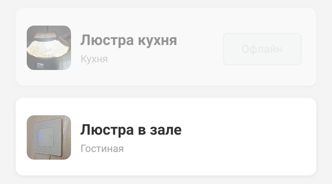 Если у пользователя сработала многолетняя привычка выключать за собой свет, и какое-то устройство осталось без питания, то оно приобретет статус офлайн, отображаясь в списке устройств как неактивное. Такими устройствами обычно являются лампочки.