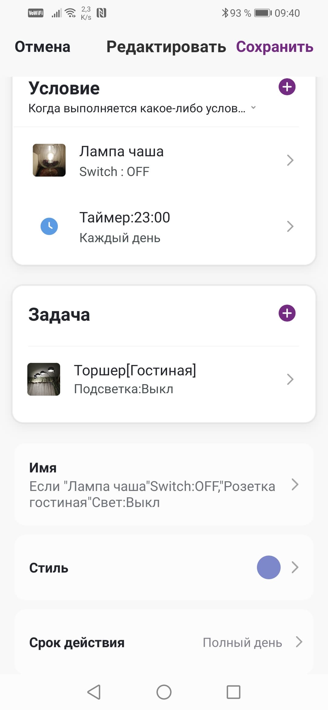 Прочие настройки, которые можно найти на их страничках в приложении, не относятся к функциям самих устройств. Различные таймеры, счетчики энергии или сценарии. Они используются во время эксплуатации приборов, а значит, будут рассмотрены в следующей главе.
