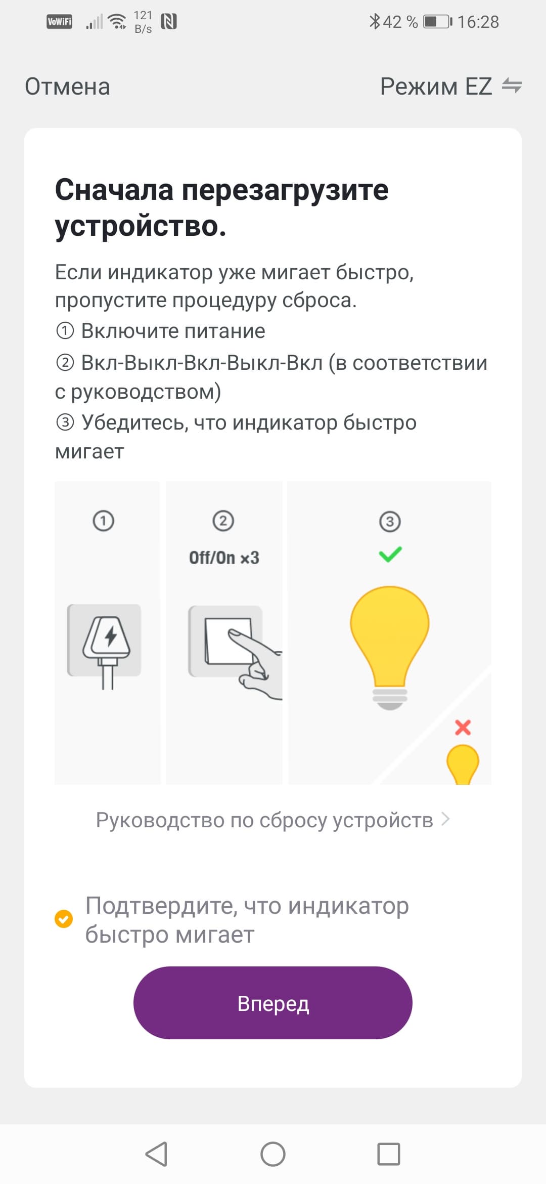 Как уже говорилось, процесс подключения устройств однотипен, различия кроются лишь в способе перевода гаджета в режим сопряжения. Так, например, чтобы умная лампа переключилась в такой режим, ее нужно трижды выключить и включить. Именно так, а не наоборот. То есть перед тем, как щелкать выключателем или оперировать с электрической вилкой, нужно убедиться, что лампа включена и светится. А теперь трижды: выкл. — вкл., выкл. — вкл., выкл. — вкл. Поначалу это бывает трудно сделать, и лишь после нескольких неудачных попыток понимаешь, что выкл./вкл. нужно производить не спеша, с секундным интервалом. Когда лампочка поймет, что от нее требуется, она кратко мигнет, чуть задумается и перейдет в режим апатичного стробоскопа, мигая с частотой раз в секунду, причем на полной яркости (берегите глаза!). Это означает, что лампа ждет инициализации.