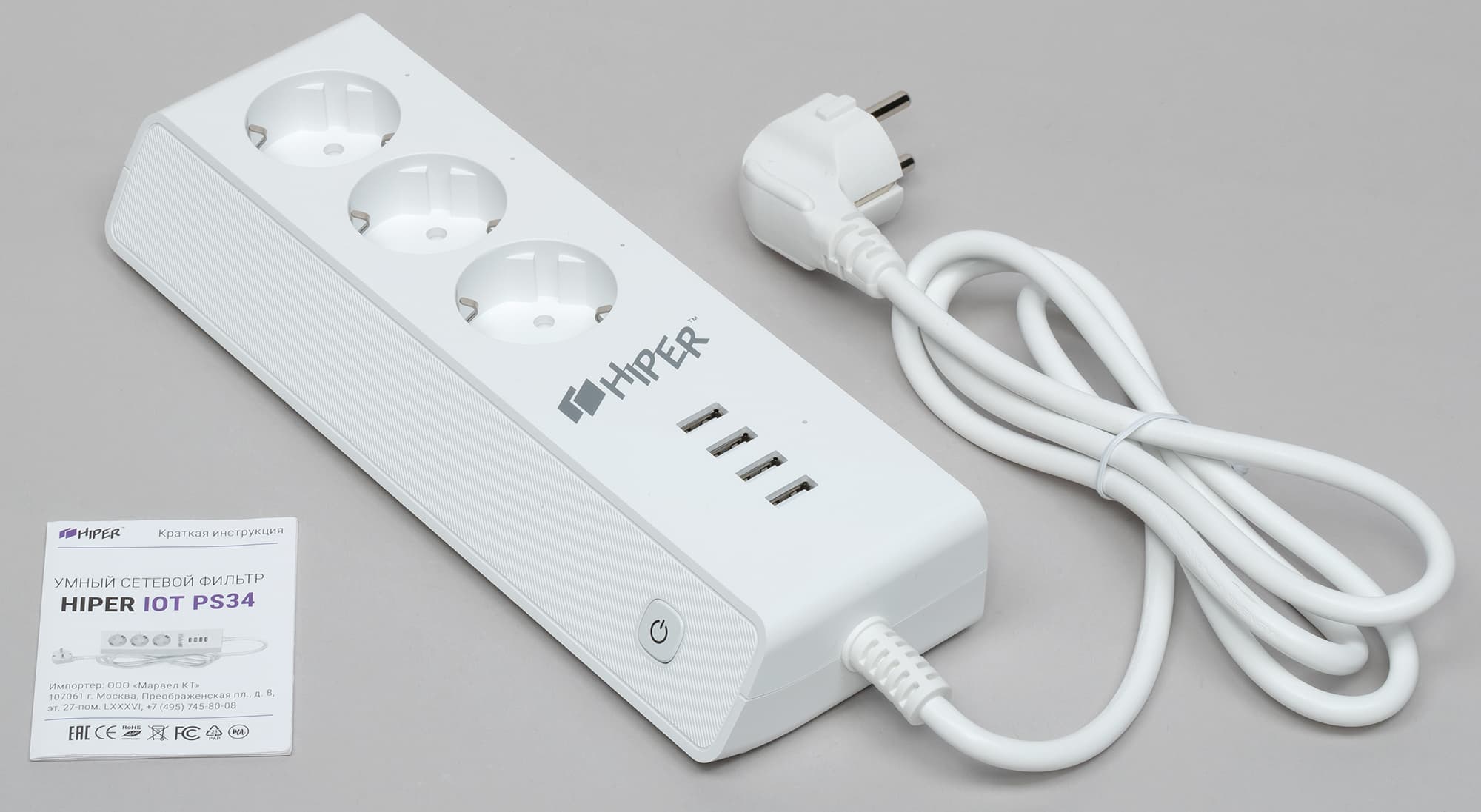 Наверное, это один из самых практически полезных и наиболее востребованных экземпляров, предоставленных для тестирования. Шутка ли, сразу четыре устройства в одном: три розетки и блок из четырех USB-портов. Да, каждая розетка и четыре порта — это, по сути, отдельные устройства. По крайней мере, так они определяются облачными сервисами, но об этом расскажем позже.