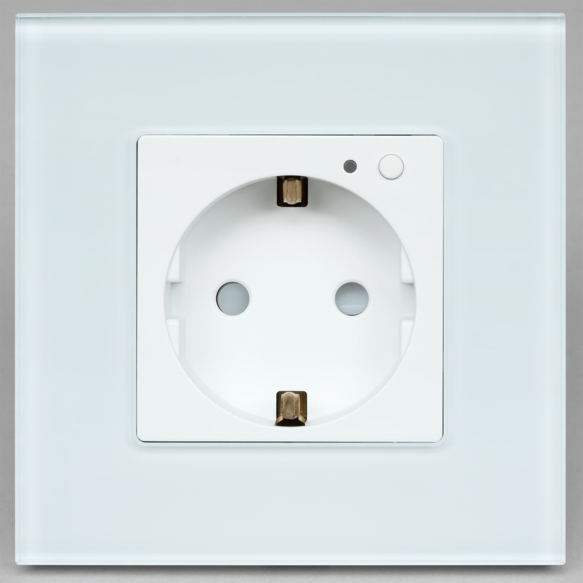 А вот это уже настоящая розетка. Белая, со стеклянной площадкой-основой. Она предназначена для монтажа в подрозетники, которые имеются только в домах с внутренней электропроводкой. Да, мы с этой бедой еще неоднократно столкнемся в процессе установки наших устройств.
