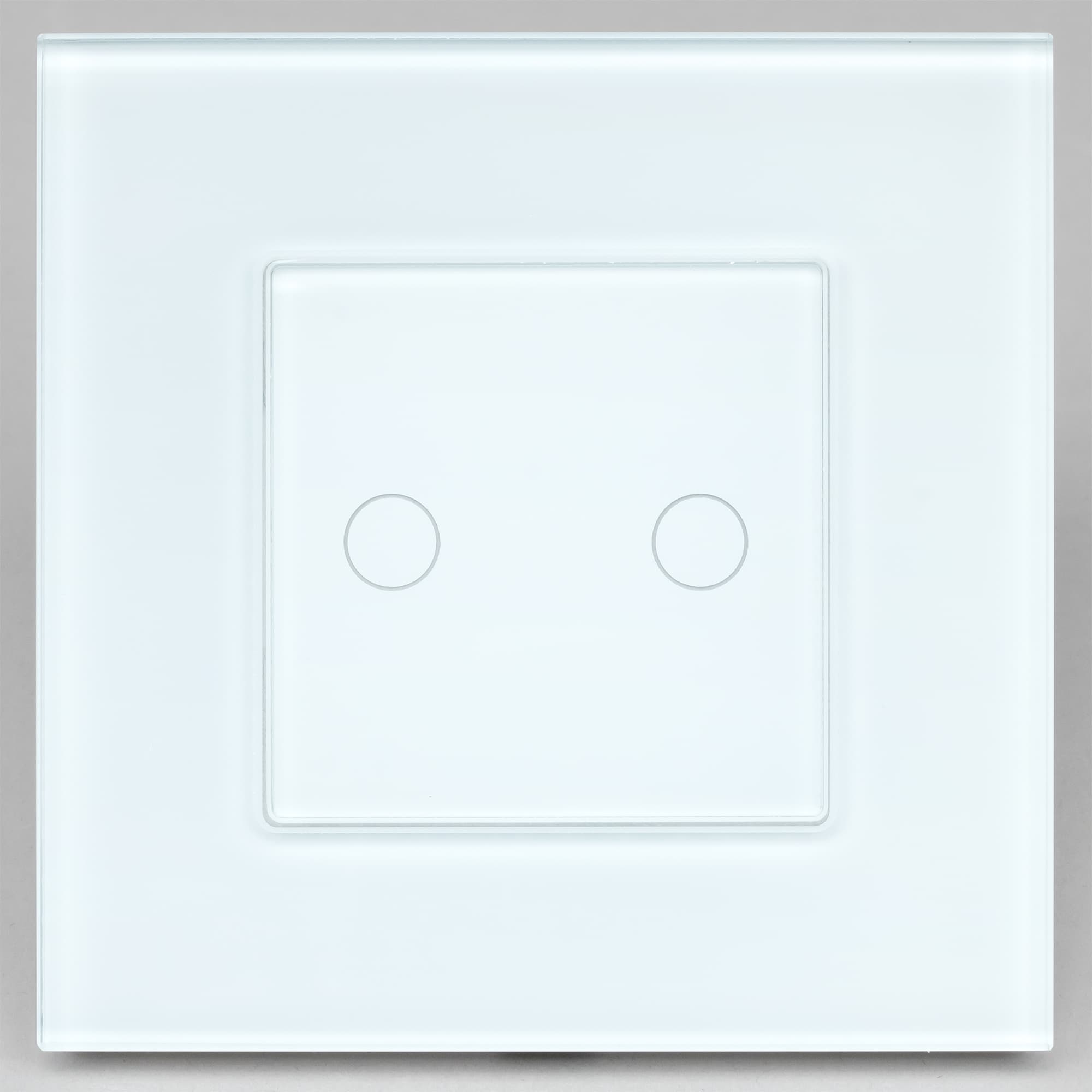 Посреди белого корпуса со стеклянной накладкой расположены два сенсора, чутко реагирующих на легчайшее прикосновение. Эти сенсоры имеют мягкую, едва заметную подсветку синего цвета. Яркость подсветки увеличивается, когда виртуальная клавиша нажата.