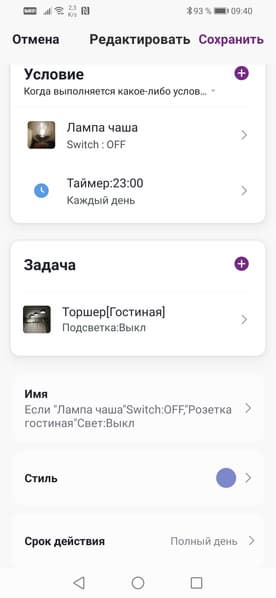 Один из примеров — освещение для цветов — мы приводили ранее. Другой пример — автоматизация включения или выключения приборов с заданным условием. Например, если вы собрались посмотреть фильм и включили бра (в полной темноте смотреть не рекомендуется), то второе бра должно включиться автоматически. И точно так же, автоматически, выключиться, когда вы уходите из комнаты и выключили один из источников света. Как это можно сделать? Теперь, с умными устройствами — очень просто. Достаточно владеть программированием на уровне детского сада, которое состоит из двух модулей: Если и Тогда. Например, если лампа такая-то выключена, тогда следует выключить и розетку. К этим сценариям можно добавить и другие, их может быть сколько угодно. Например, добавить еще и таймер, чтобы розетка выключилась при наступлении определенного времени, несмотря на то, что первое правило не исполнено (лампочка такая-то не выключена). Каждое правило (сценарий) легко редактируется, внести в них изменения или вовсе удалить не составляет никакого труда. А при желании выполнение этих сценариев может быть приостановлено, для чего на иконке сценария имеется переключатель. Как видим, программная часть очень тщательно продумана.