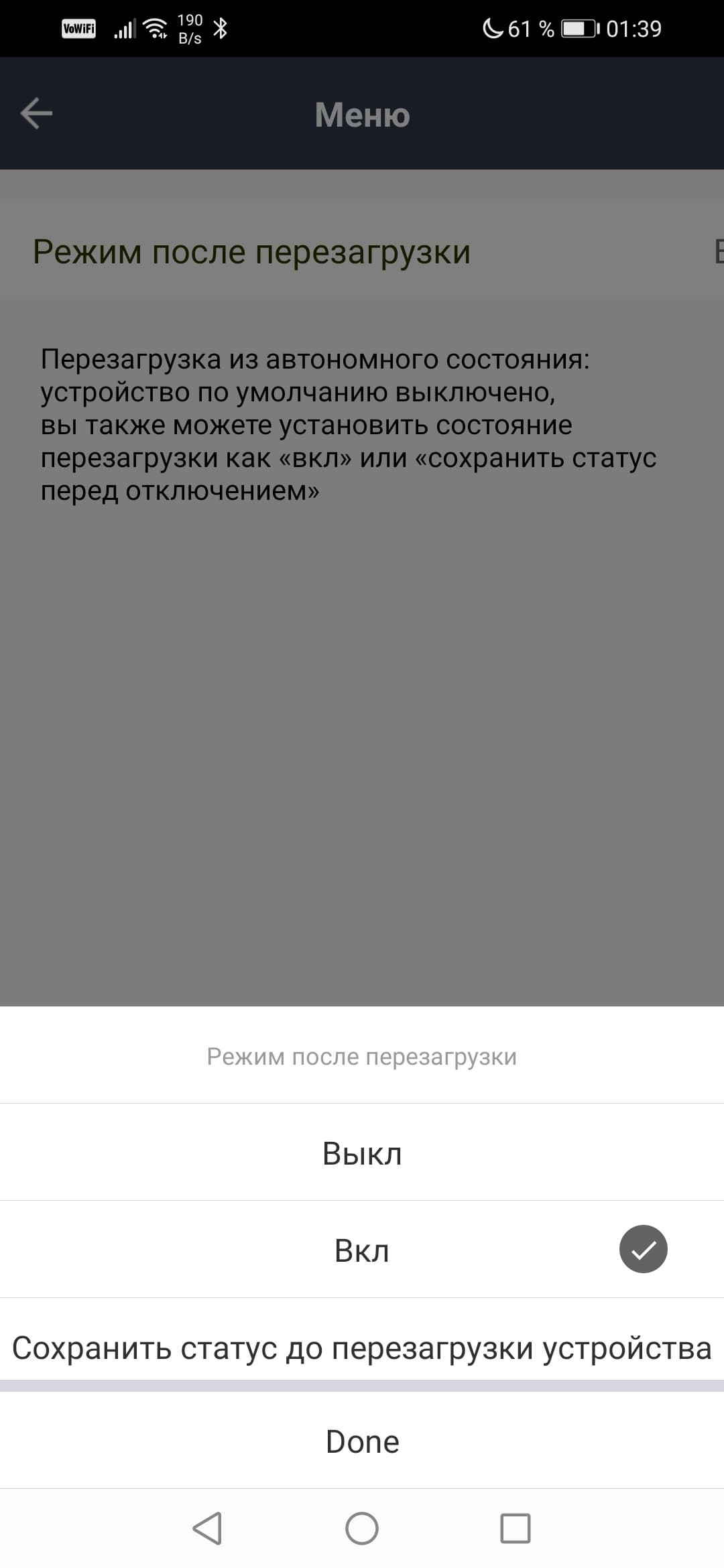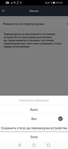 Требуется отметить важный момент: некоторые устройства, управляющие передачей энергии (розетки, переключатели), имеют настройку, которая определяет поведение гаджета после сбоя. Под сбоем тут следует понимать только одно: внезапное отключение электроэнергии с последующим включением. Как должен вести себя прибор? Должен ли он включиться или, наоборот, перейти в состояние выкл.? Наверняка многие сталкивались с тем, что после отключения/включения электричества некоторые домашние приборы (плееры, усилители и т. д.) самовольно включаются и остаются включенными. Чтобы такого не происходило, в рассматриваемых устройствах имеется настройка, позволяющая вручную установить статус прибора после перезагрузки: оставаться выключенным, включиться, либо перейти в режим, предшествовавший незапланированному отключению. Если такой настройки в устройстве не имеется — это означает, что данный прибор при включении самостоятельно перейдет в режим выкл.