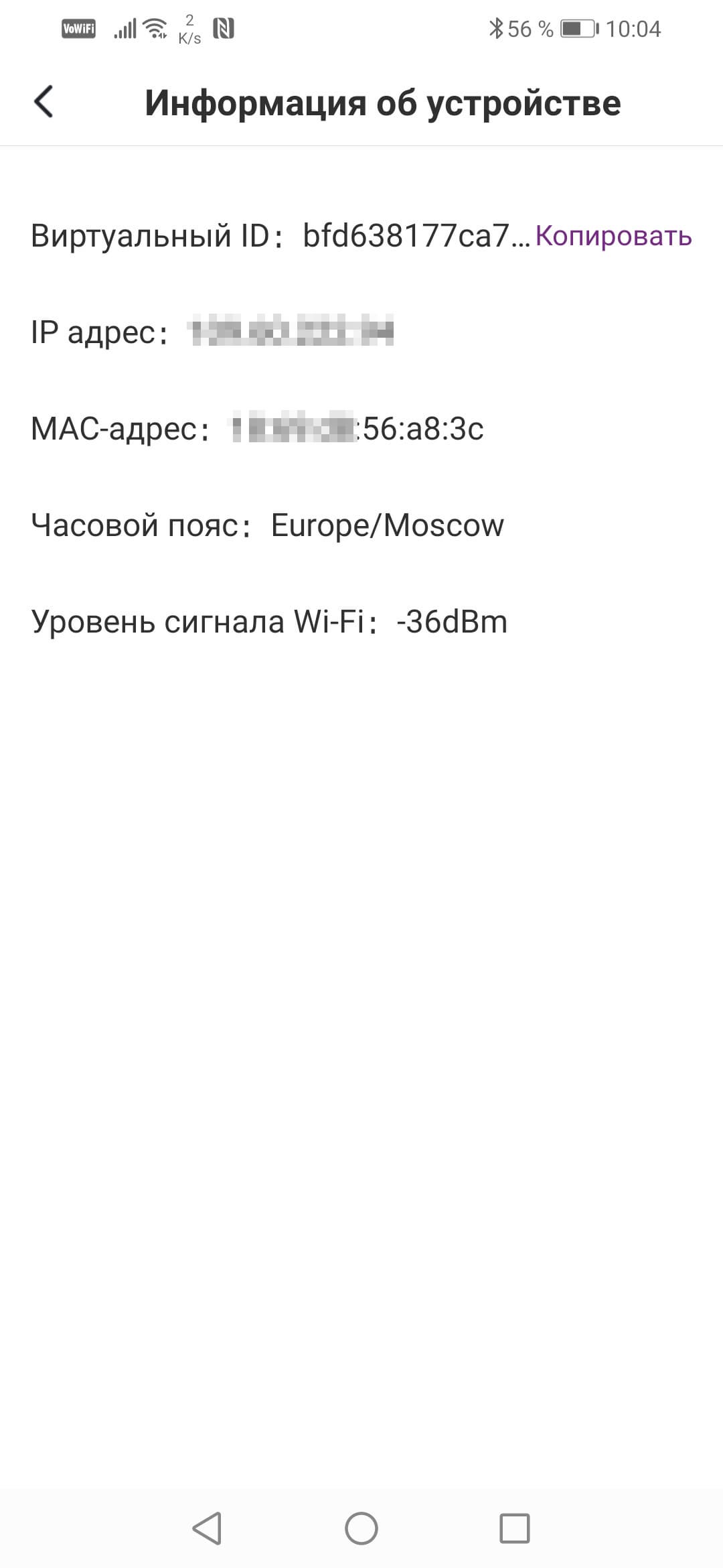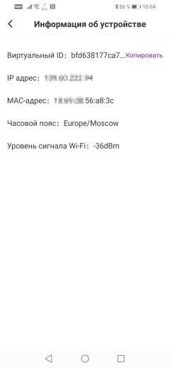 У каждого устройства Hiper имеются и другие вкладки настроек: информация и проверка обновлений прошивки. Кстати, в пункте Информация об устройстве всегда отображается внешний IP-адрес, с которого гаджет соединяется с облачным сервисом.