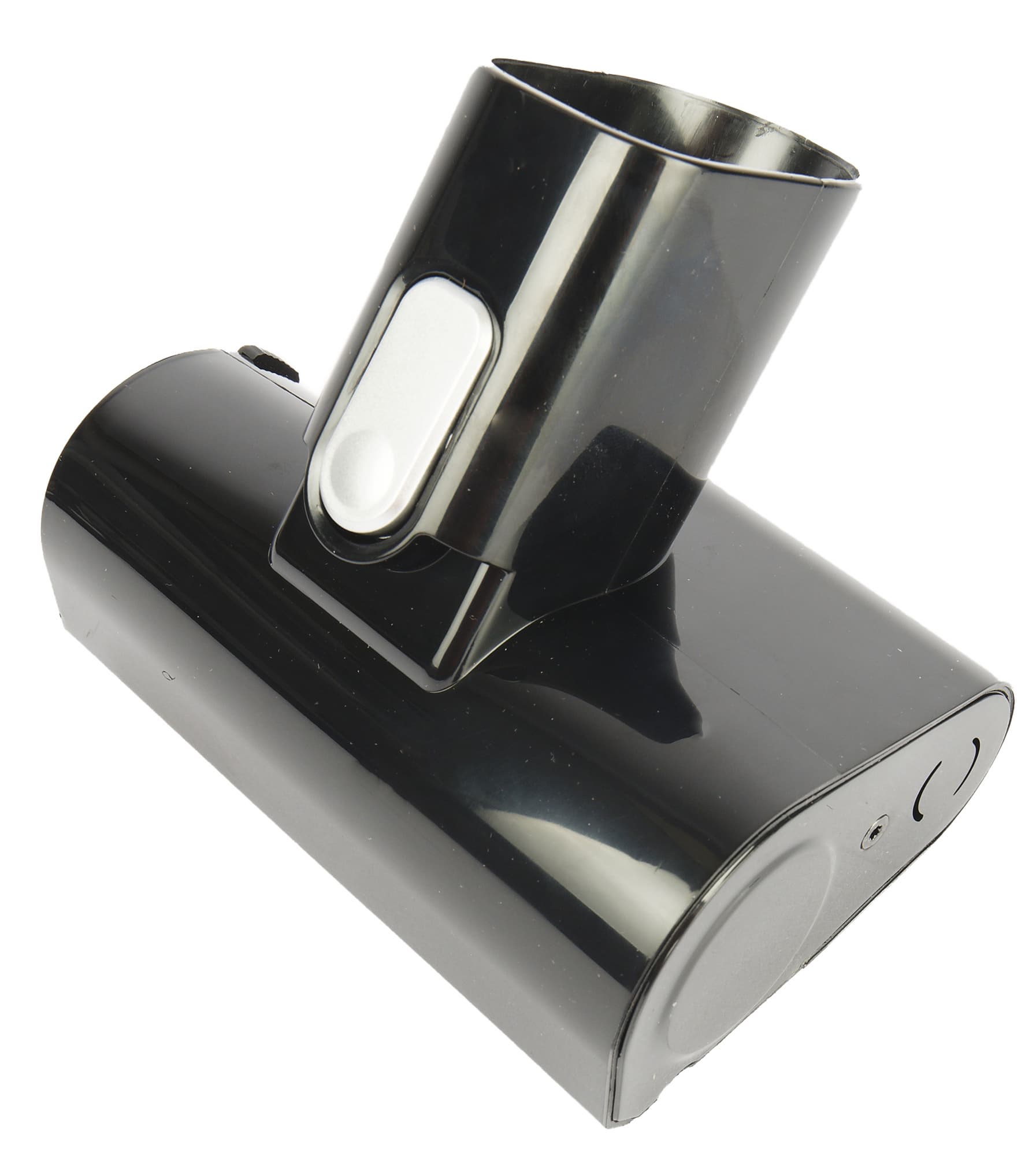 Съемный аккумулятор подключается к устройству через восьмиконтактный разъем. В передней части батареи есть гнездо для адаптера постоянного тока: заряжать ее можно и без установки на пылесос.