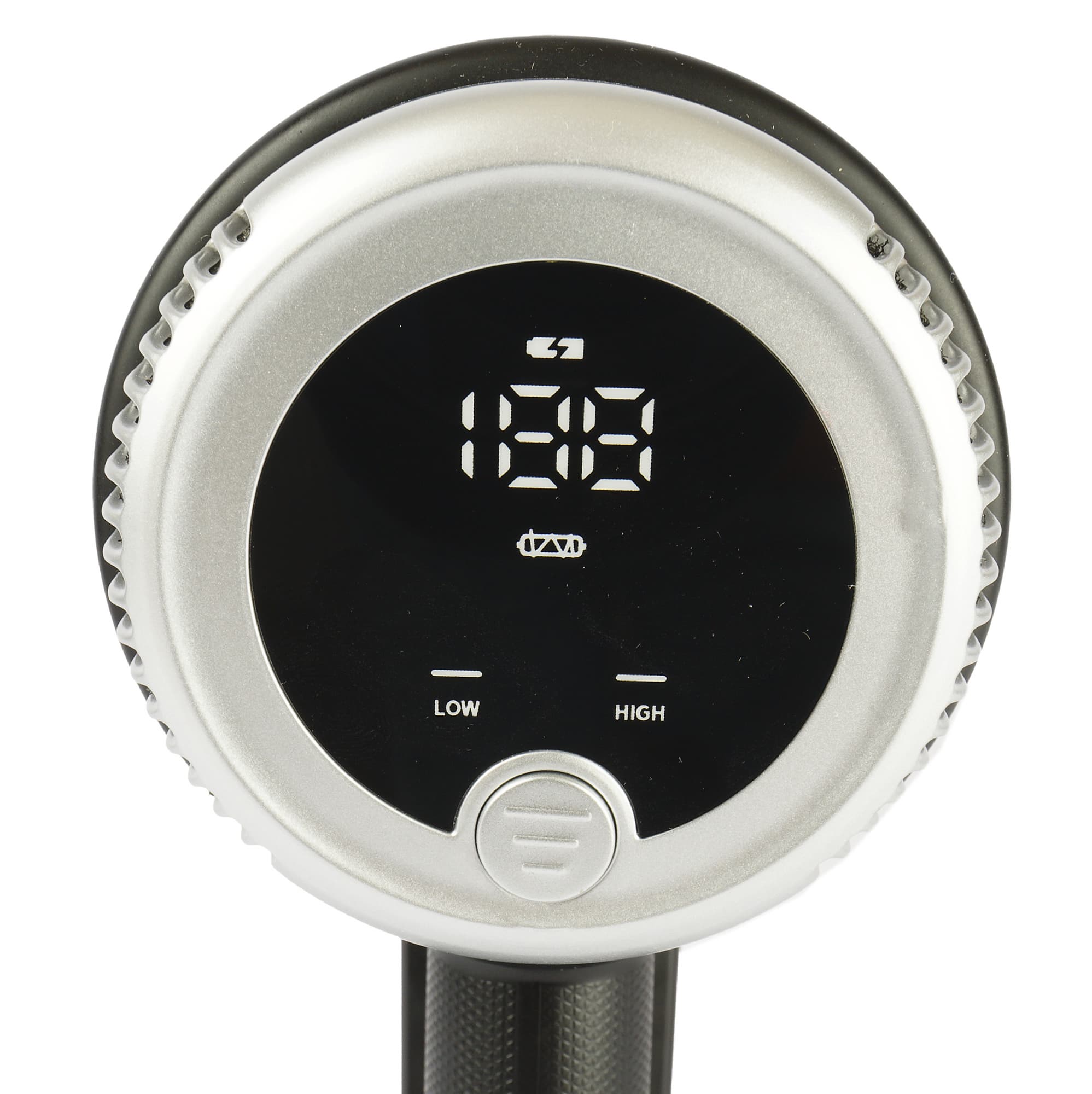 На круглом дисплее, обрамляющем кнопку выбора мощности, при работе и во время зарядки отображается текущая емкость аккумулятора в процентах (от 100% до 1%, с шагом в 1%). Два индикатора под цифрами обозначают режим работы: Low или High.