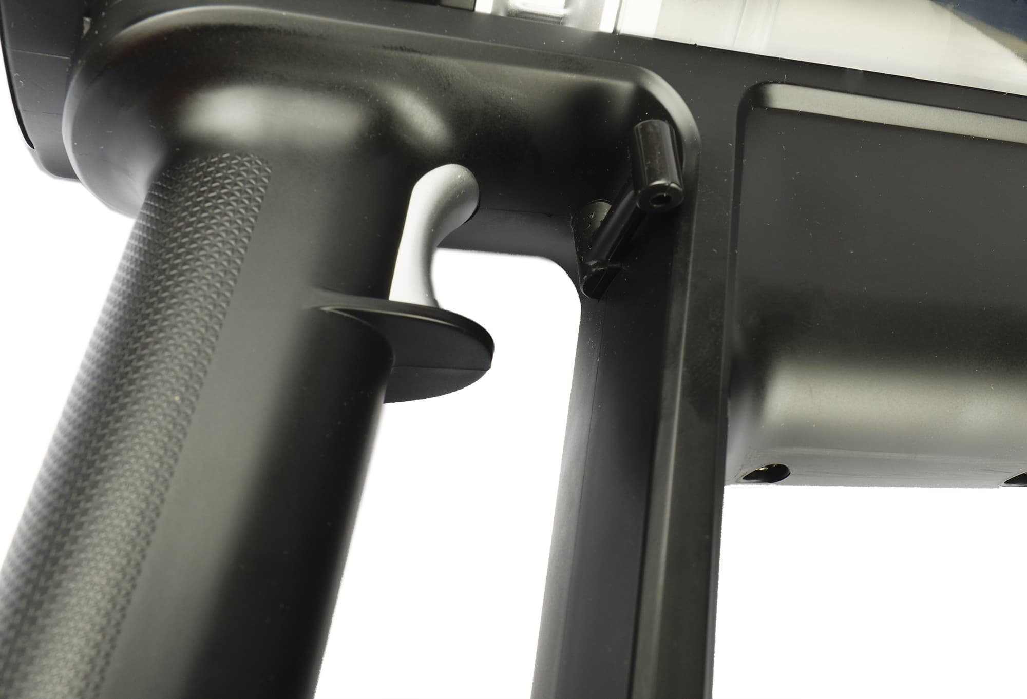 Съемный литий-ионный аккумулятор емкостью 2 А·ч крепится к пистолетной рукоятке снизу и надежно удерживается защелкой-кнопкой.