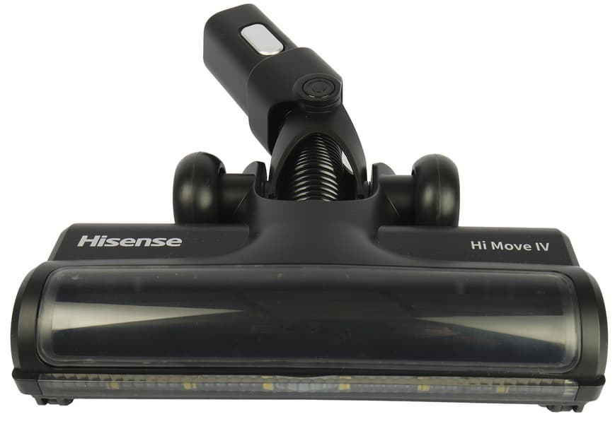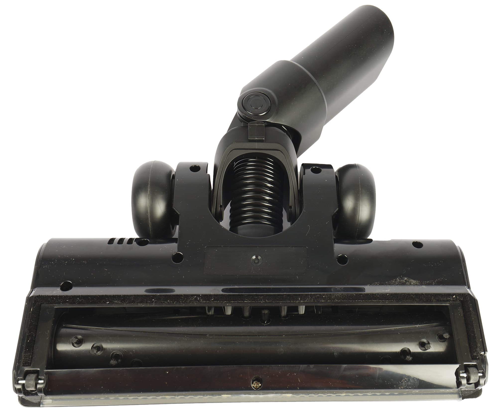Шарнир насадки для уборки пола позволяет без усилий изгибать ее относительно трубки на 90° вперед-назад и примерно на 55° вправо и влево. Ротор щетки прикрывает полупрозрачный кожух из темного пластика, а в передней части располагается блок подсветки рабочей зоны, состоящий из шести ярких светодиодов.