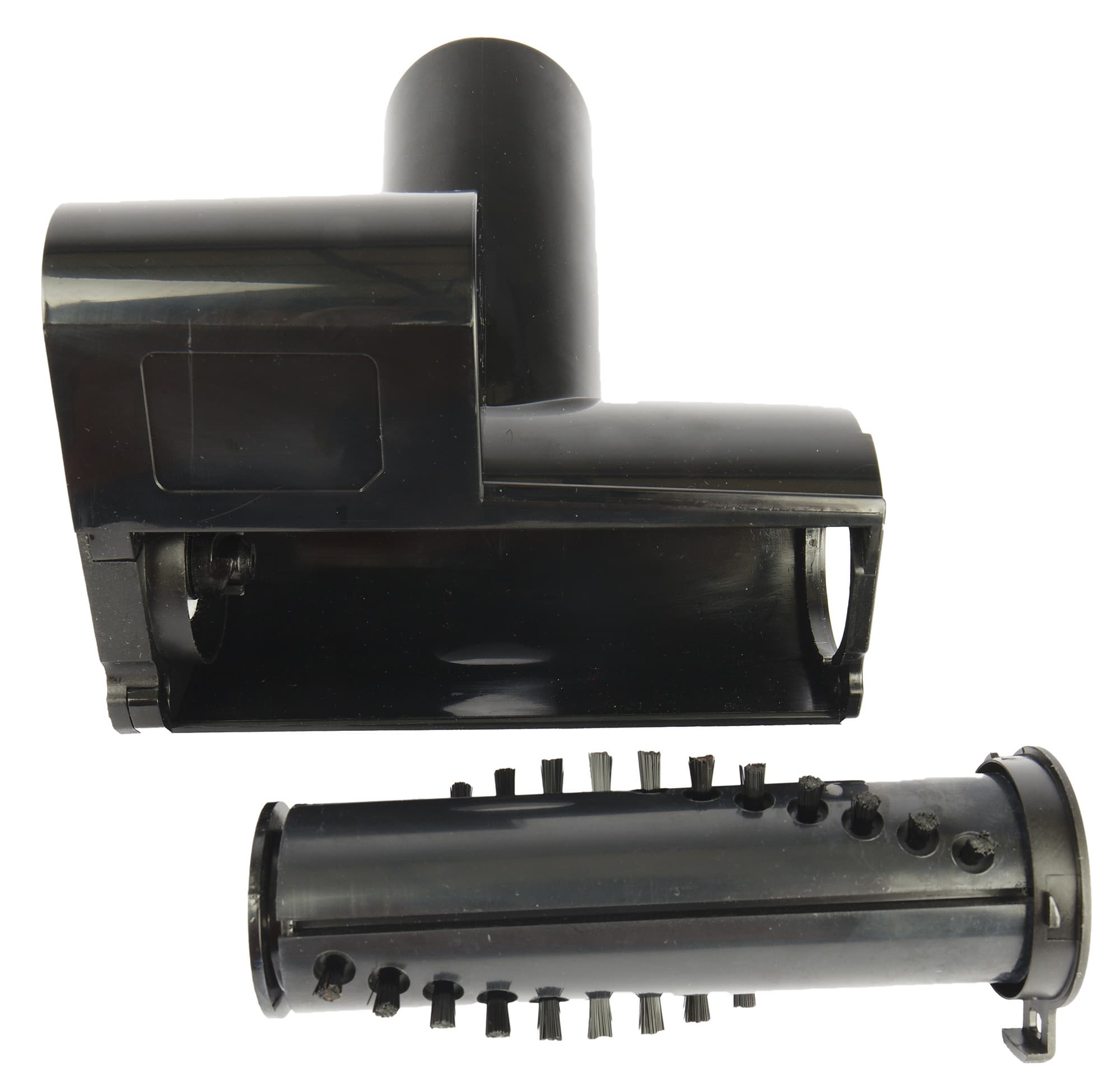 У ротора малой насадки такая же несложная конструкция, как и у щетки для пола: два ряда пучков жесткой щетины, расположенных по спирали.