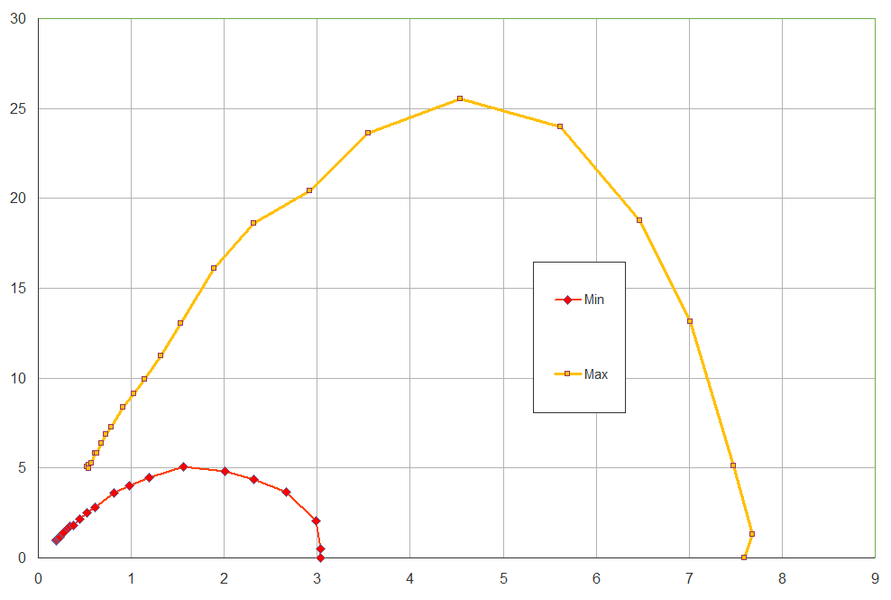 Мощность всасывания (что это такое и как мы ее измеряем, описано в отдельной статье) мы определяли при работе пылесоса без трубы и насадок, в обоих режимах. Зависимость мощности всасывания от создаваемого разрежения приведена на графике ниже: