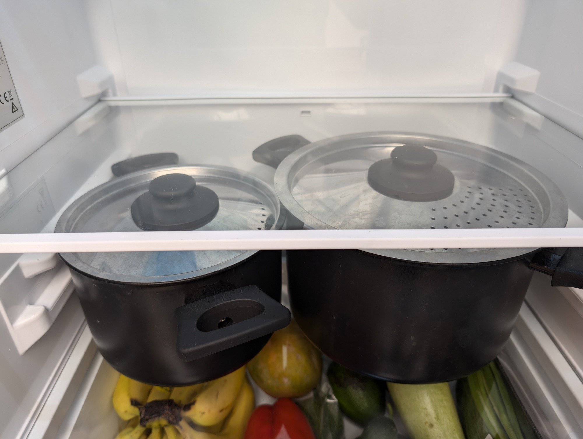 Ширина камеры позволяет разместить рядом обе кастрюли.