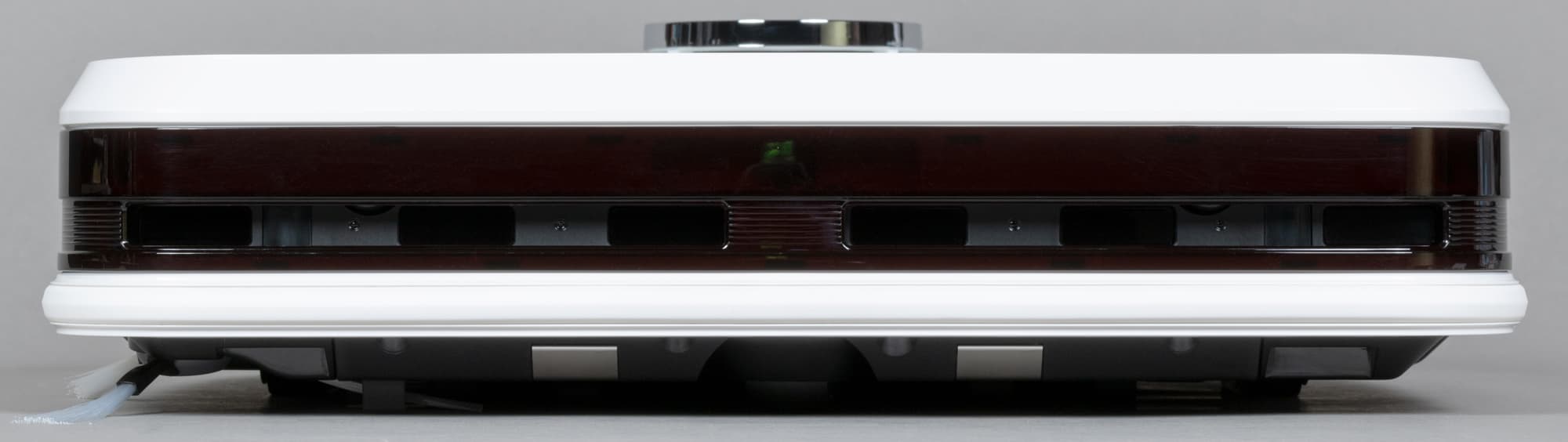За ИК-прозрачным стеклом бампера скрыты инфракрасные датчики, помогающие пылесосу в ориентировании и поиске зарядного устройства.
