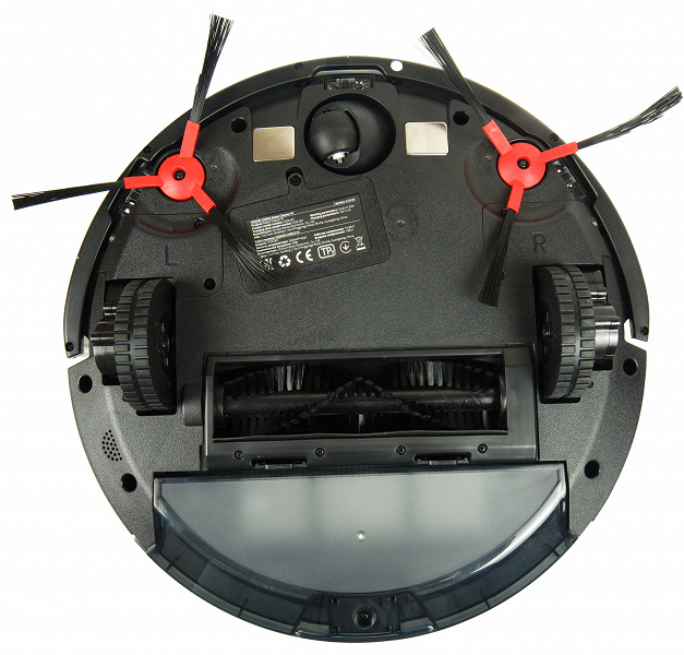 У рамки центральной щетки нет никаких приспособлений, защищающих ротор от случайного наматывания электропроводов: об отсутствии на полу посторонних предметов придется беспокоиться владельцу. Сама щетка также простой, ничем не примечательной конструкции: три ряда V-образных элементов из щетины средней жесткости, без дополнительных ламелей.