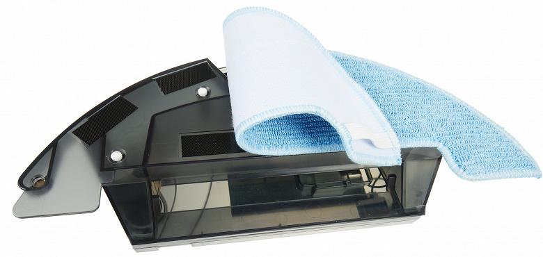 У него также есть емкость для пыли, но основное его назначение — протирка твердых поверхностей D-образной тряпкой, крепящейся к нижней поверхности контейнера при помощи липучек-велкро и дополнительно фиксируемой двумя резинками. Вода из резервуара поступает на тряпку через четыре микроотверстия.