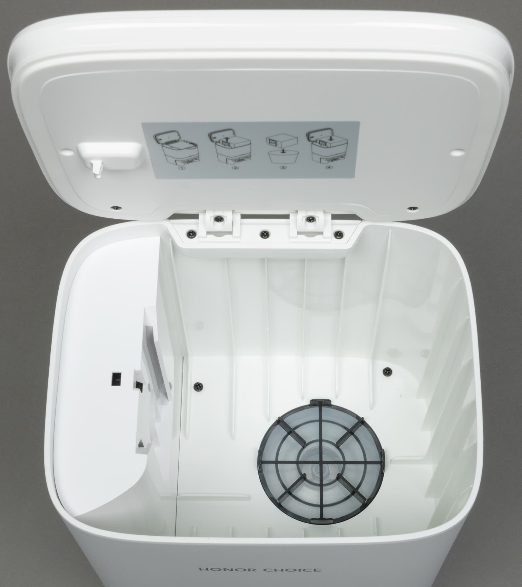 На крышке мусоросборника наклеена этикетка, объясняющая, как правильно опустошать емкость.