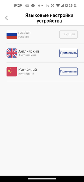 «Языковые настройки» помогут настроить голосовой пакет робота. По умолчанию устройство разговаривает по-русски, среди доступных языков есть также китайский и английский.