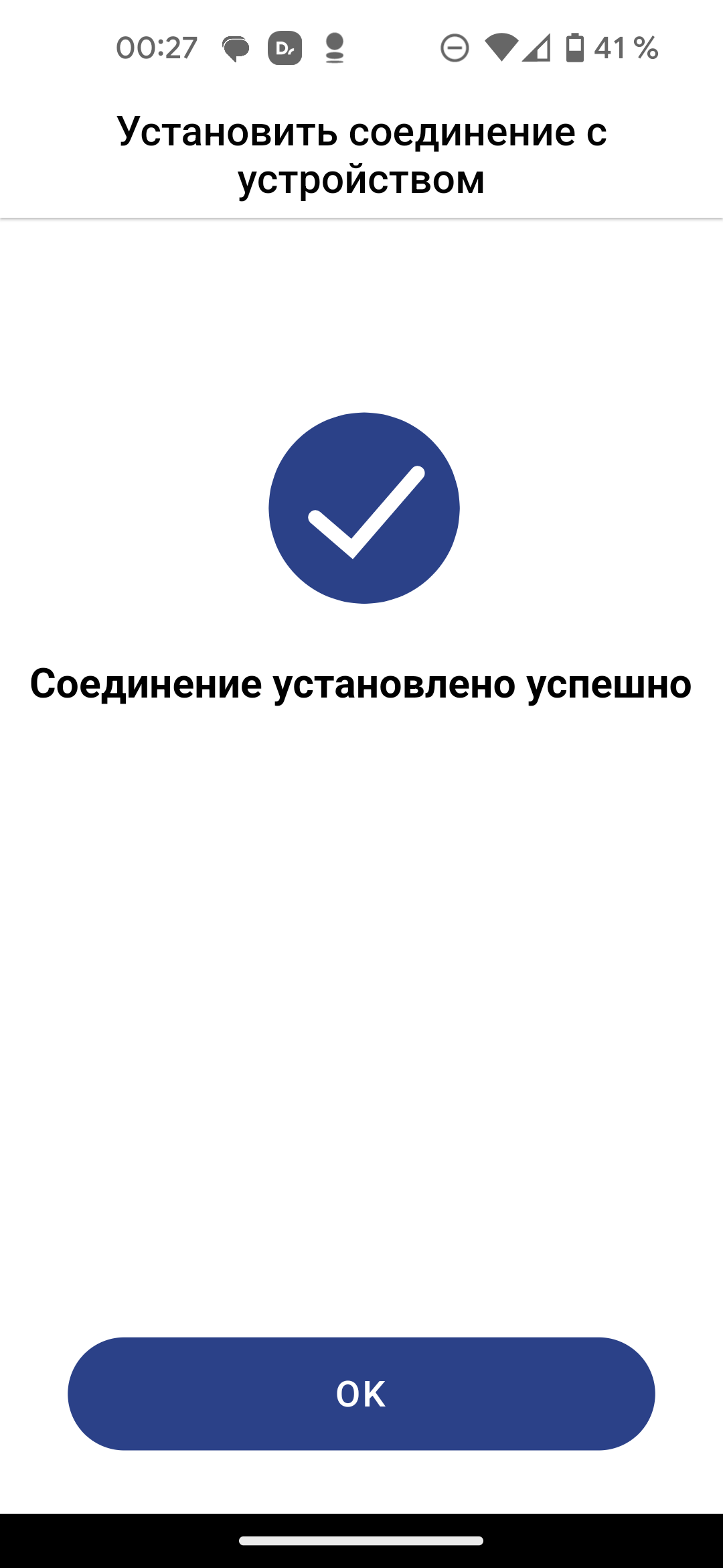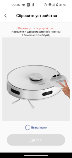 После ввода данных приложение подключается к временной сети, созданной нашим пылесосом, и через непродолжительное время сообщает об успешном завершении сопряжения.