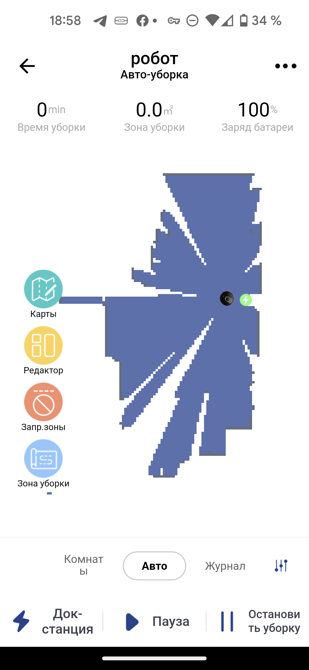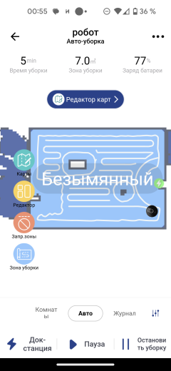 После первой уборки в автоматическом режиме на экране появляется карта помещения. Приложение само разбивает его на комнаты, раскрашивая их в разные цвета. Если такая разметка оказалась неточной, это можно исправить с помощью инструмента «редактор»