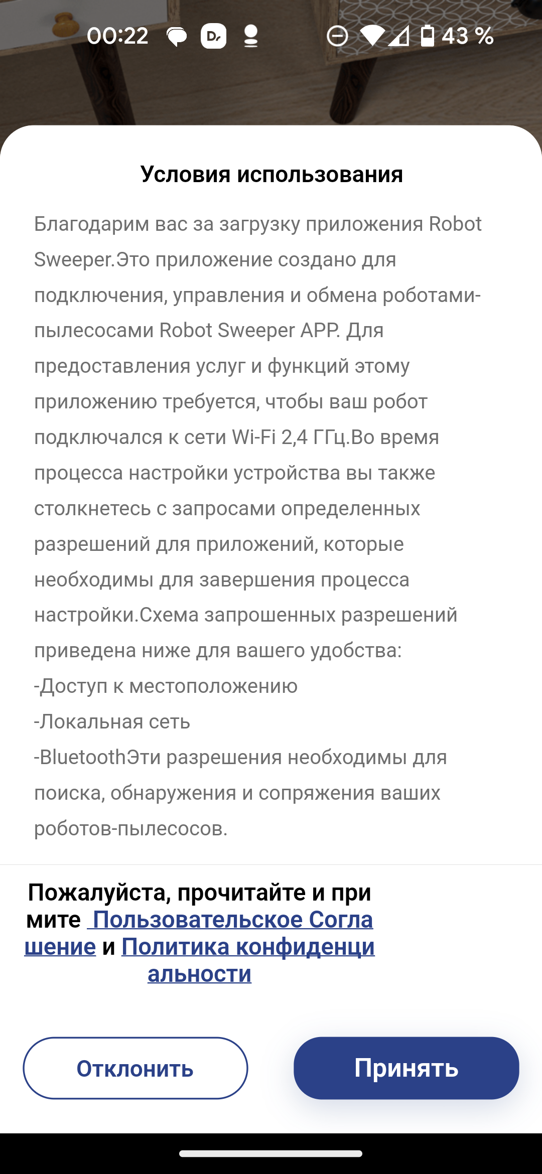 Для работы приложение запрашивает доступ к отправке уведомлений, требует принять пользовательское соглашение и политику конфиденциальности и зарегистрироваться с верифицированным адресом электронной почты.