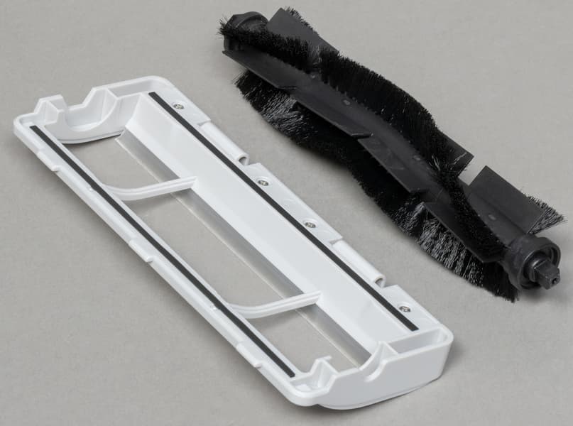 На центральной щетке — три V-образных ряда щетины средней жесткости, между которыми расположены пластиковые ламели. От случайного наматывания электропроводов ротор защищен двумя элементами из того же материала, смонтированными на рамке. Левая ось щетки вставляется в четырехугольное отверстие подшипника, правая — в отверстие привода (также четырехугольное, но большего диаметра). Таким образом установить ее в пылесос можно единственным (правильным) способом.