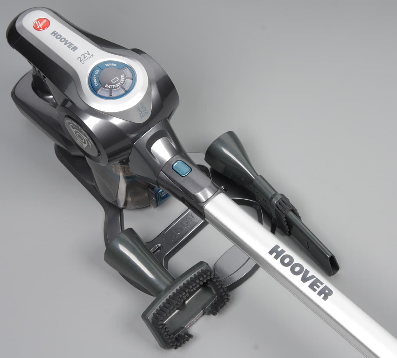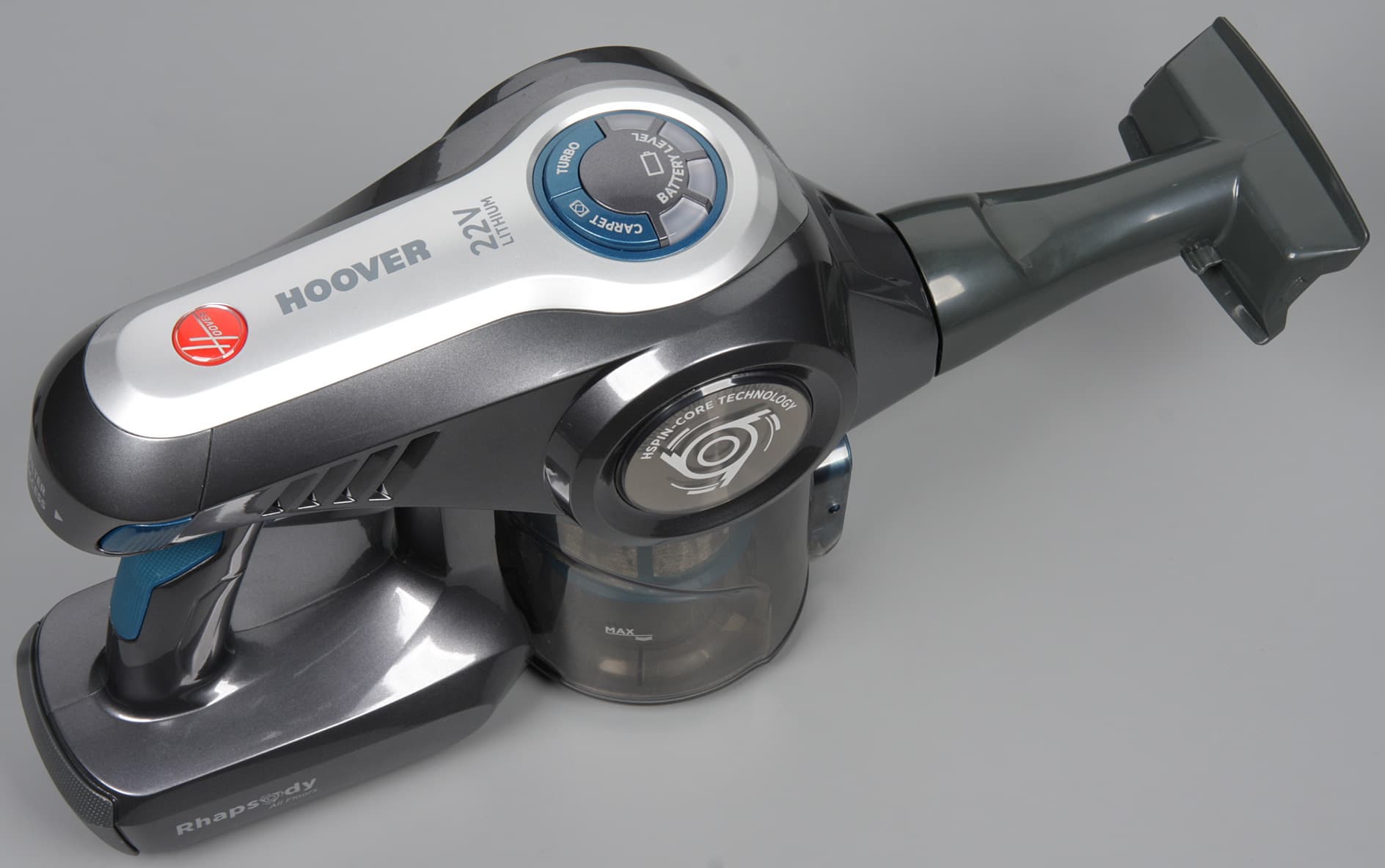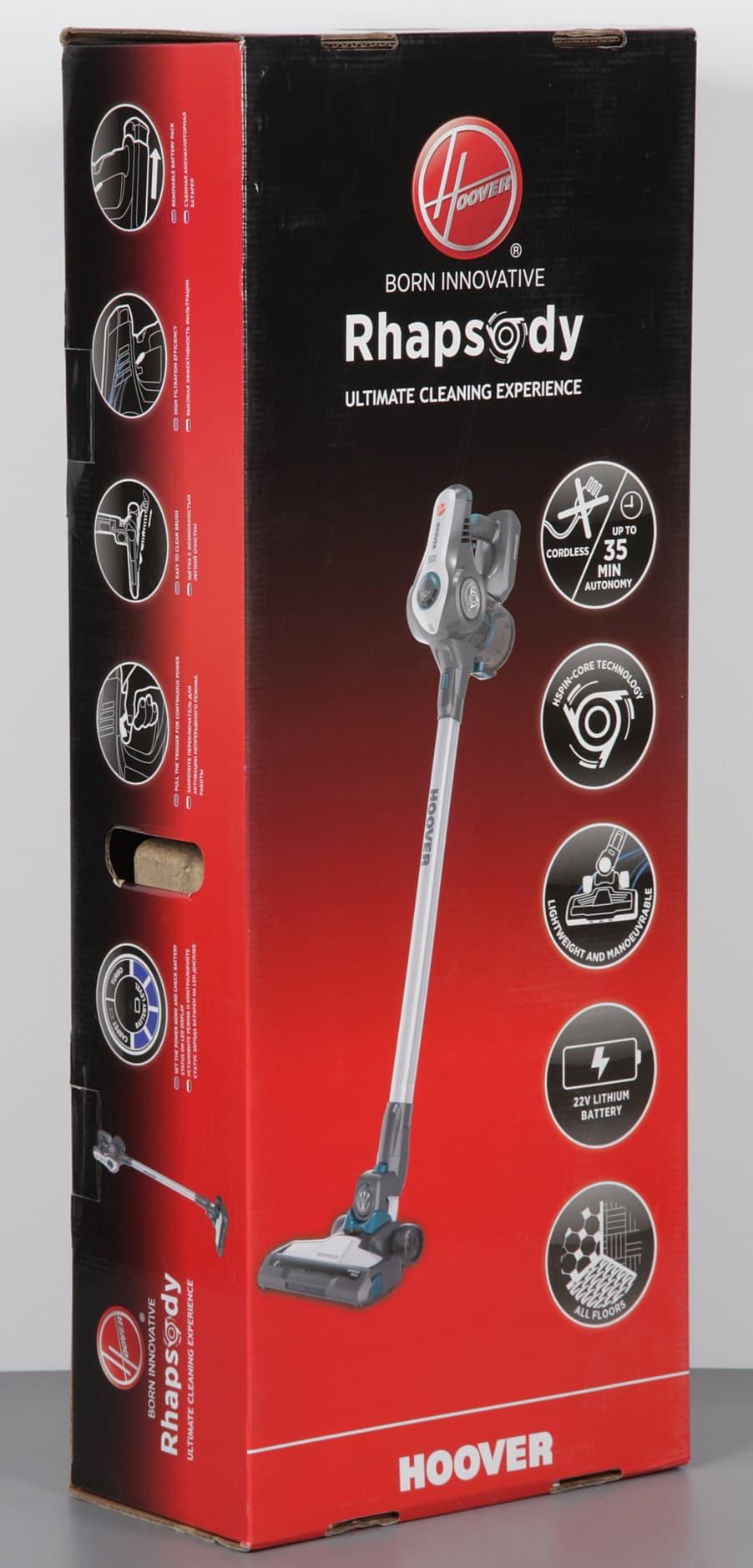Hoover Rhapsody RA22AFG 019 является компактным универсальным пылесосом, работающим от аккумулятора. Компоновка с удлинительной трубой и электрощеткой позволяет быстро и эффективно убирать относительно большие площади пола с покрытием любого типа. Варианты с комбинированной или щелевой насадкой удобно использовать для чистки одежды, мебели и, например, салона автомобиля. К особенностям конструкции относится вращение сетки в центре пылесборника, что увеличивает эффективность циклонного фильтра.