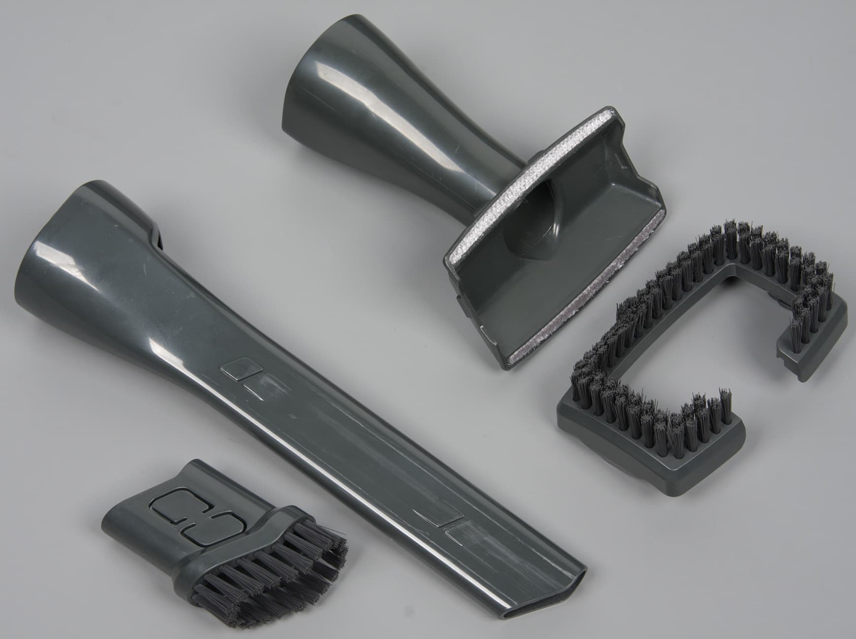 Сдвинутый вперед венчик из пучков щетины средней жесткости превращает щелевую насадку в щетку для уборки в труднодоступных местах. Если нужна обычная щелевая насадка, то венчик можно сдвинуть назад, или даже снять его совсем. Комбинированная насадка также оснащена съемной рамкой со щетиной. С ней это небольшая универсальная щетка, без нее — насадка для чистки мягкой мебели.