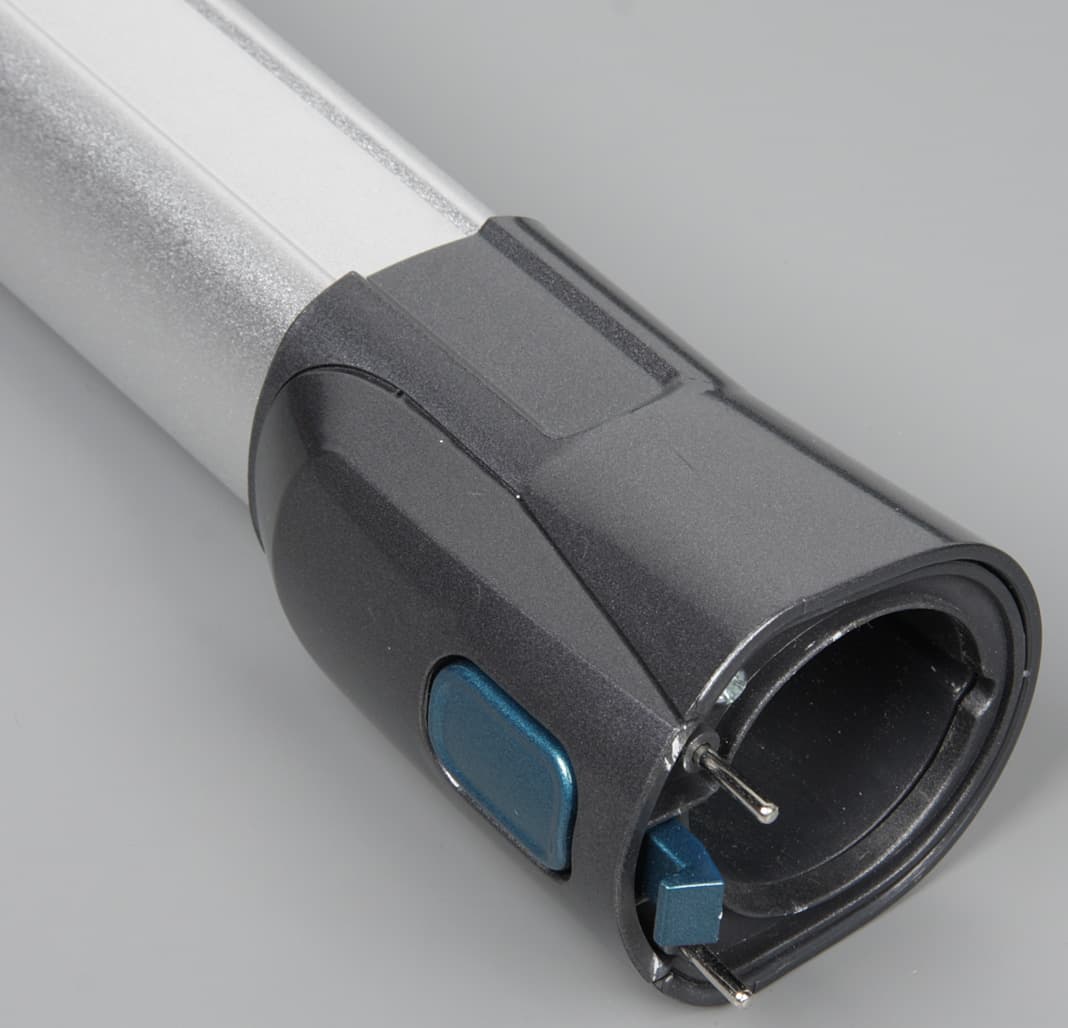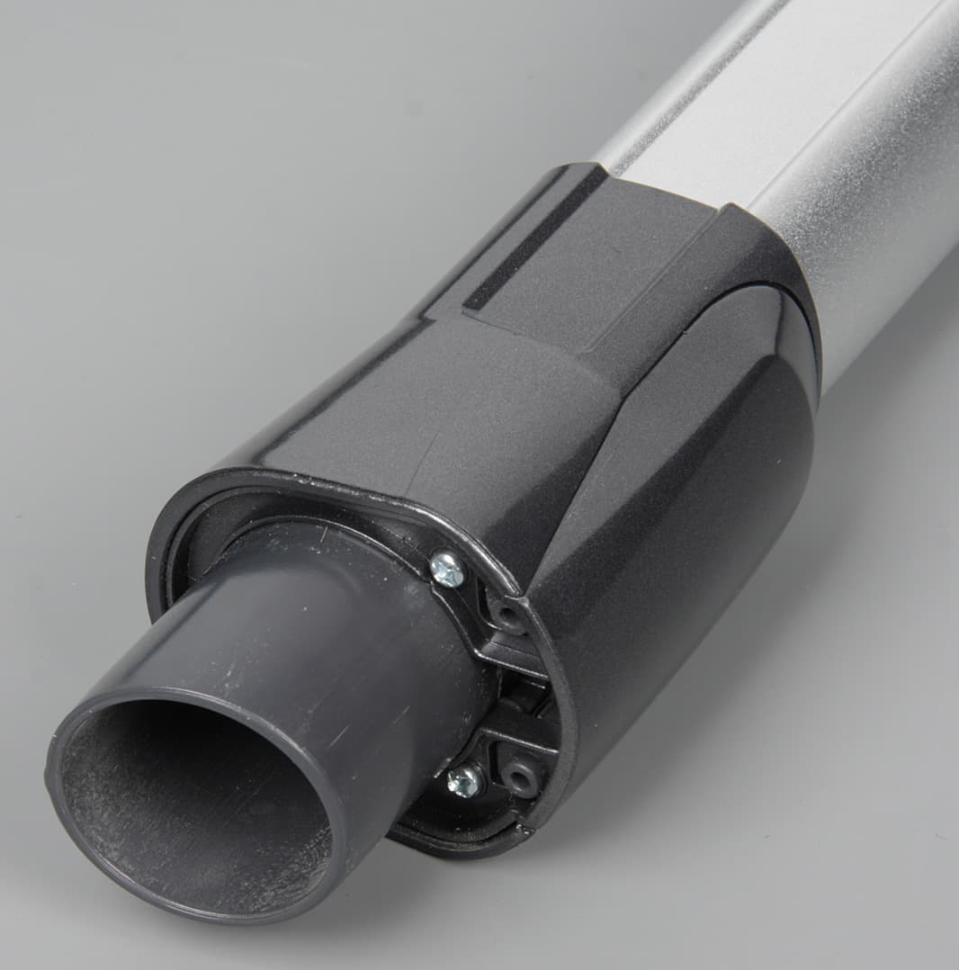 Удлинительная труба относительно легкая, она изготовлена из алюминия с серебристым покрытием. На торцах закреплены наконечники из пластика. Длина трубы равна 709 мм.
