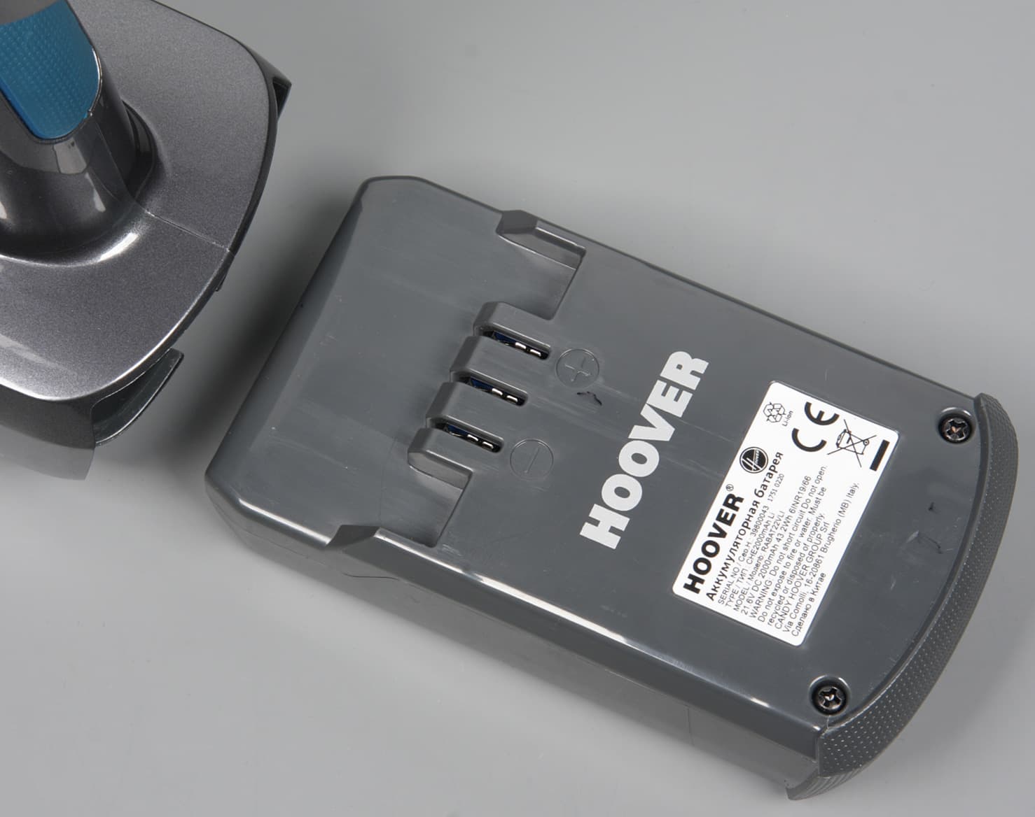 Разъем для зарядки находится на самой батарее, поэтому заряжать ее можно, когда она установлена в пылесосе, так и отдельно.