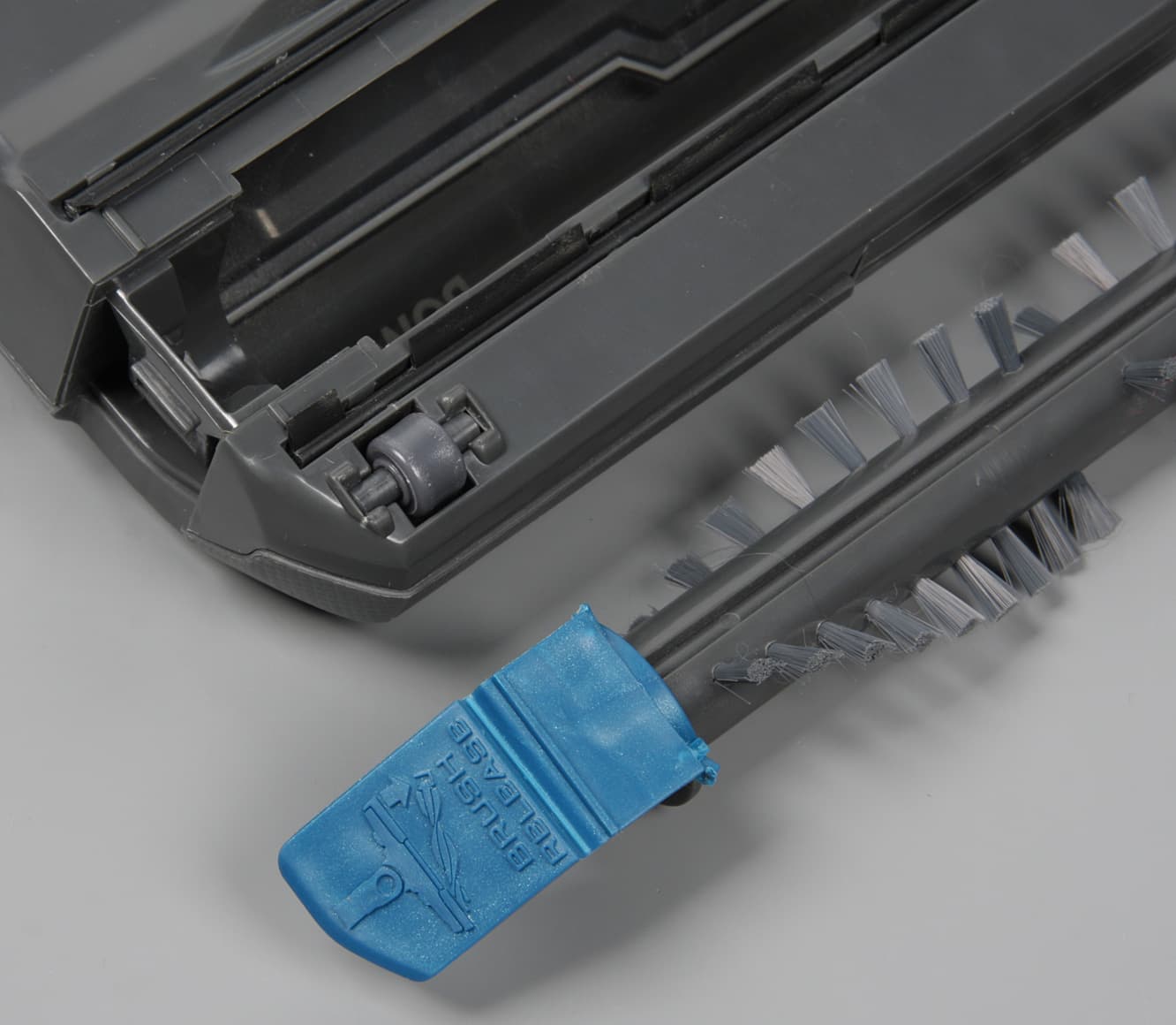 Выступ на патрубке и углубление на корпусе щетки обеспечивают фиксацию патрубка в верхнем положении с небольшим наклоном вперед. Благодаря этому пылесос можно оставить в вертикальном положении без дополнительной поддержки в перерывах уборки или при хранении.