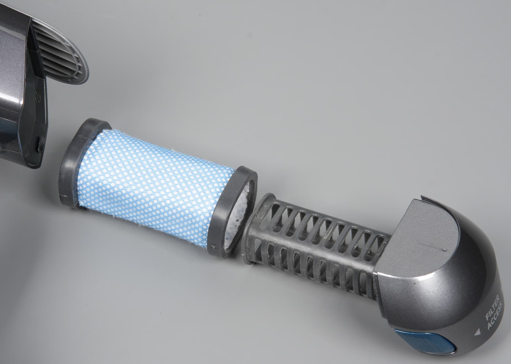 Для ее извлечения из корпуса пылесоса нужно сдвинуть вбок фиксатор снизу.