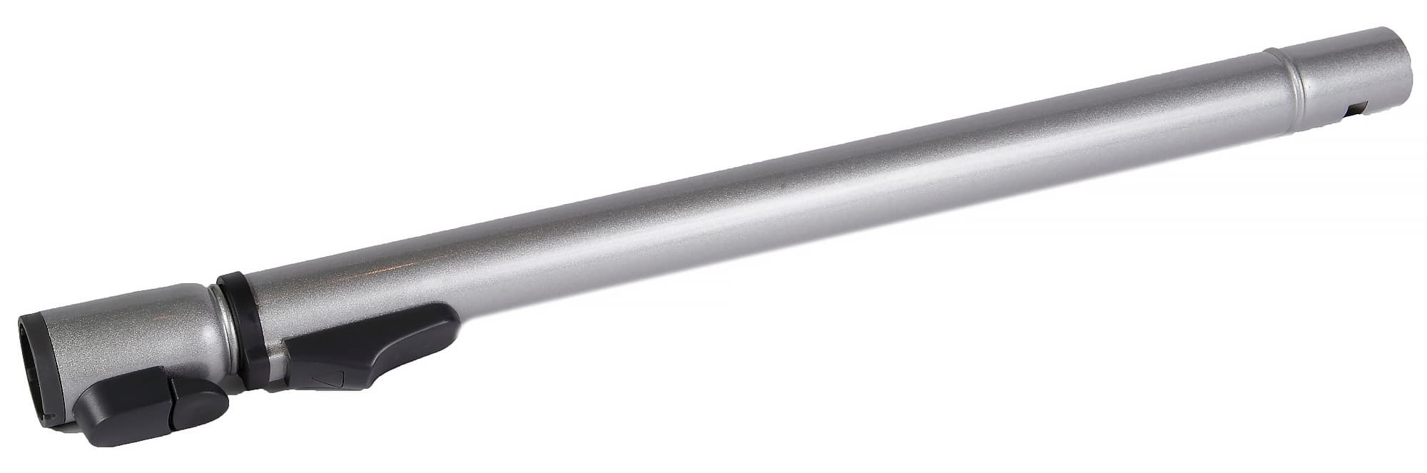 Труба металлическая, окрашена краской «металлик», наружный диаметр в самой узкой части — 32 мм. Длина изменяемая — от 57 до 91 см с шагом 2 см. На конце трубы, к которому присоединяются щетки и насадки, находится отверстие, в которое входит защелка на щетках, препятствуя их случайному отсоединению. Отметим, что защелкой снабжены только 3 основных щетки — универсальная, паркетная и турбо. Все остальные насадки крепятся просто плотной посадкой на конус.