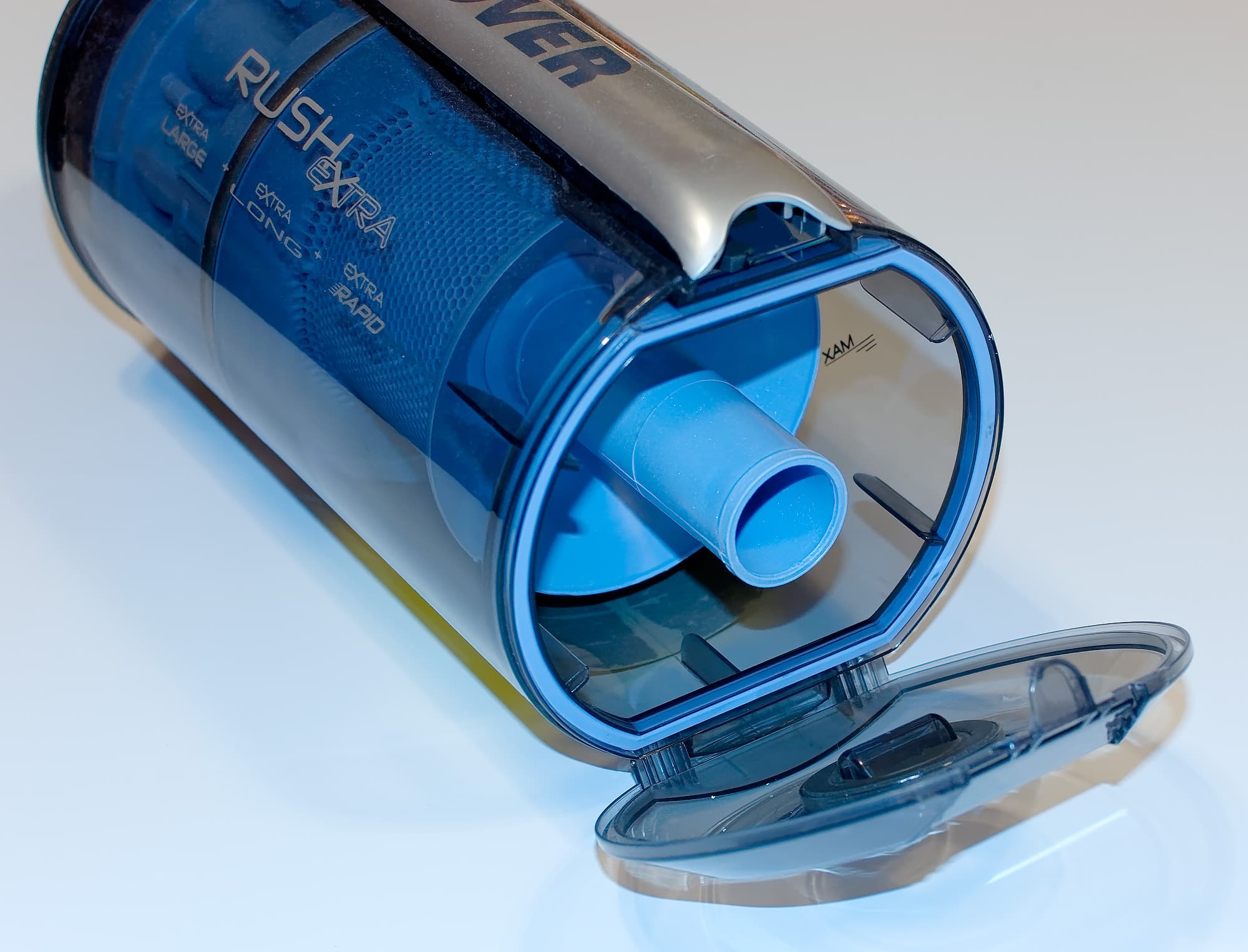 Мусоросборник имеет отметку Max, но ввиду того, что в рабочем положении циклон лежит на боку, ориентироваться на нее довольно проблематично. Впрочем, если вы привыкли вытряхивать мусор после каждой уборки, вряд ли вы когда-нибудь столкнетесь с необходимостью сделать это в середине процесса — объем мусоросборника действительно очень большой.