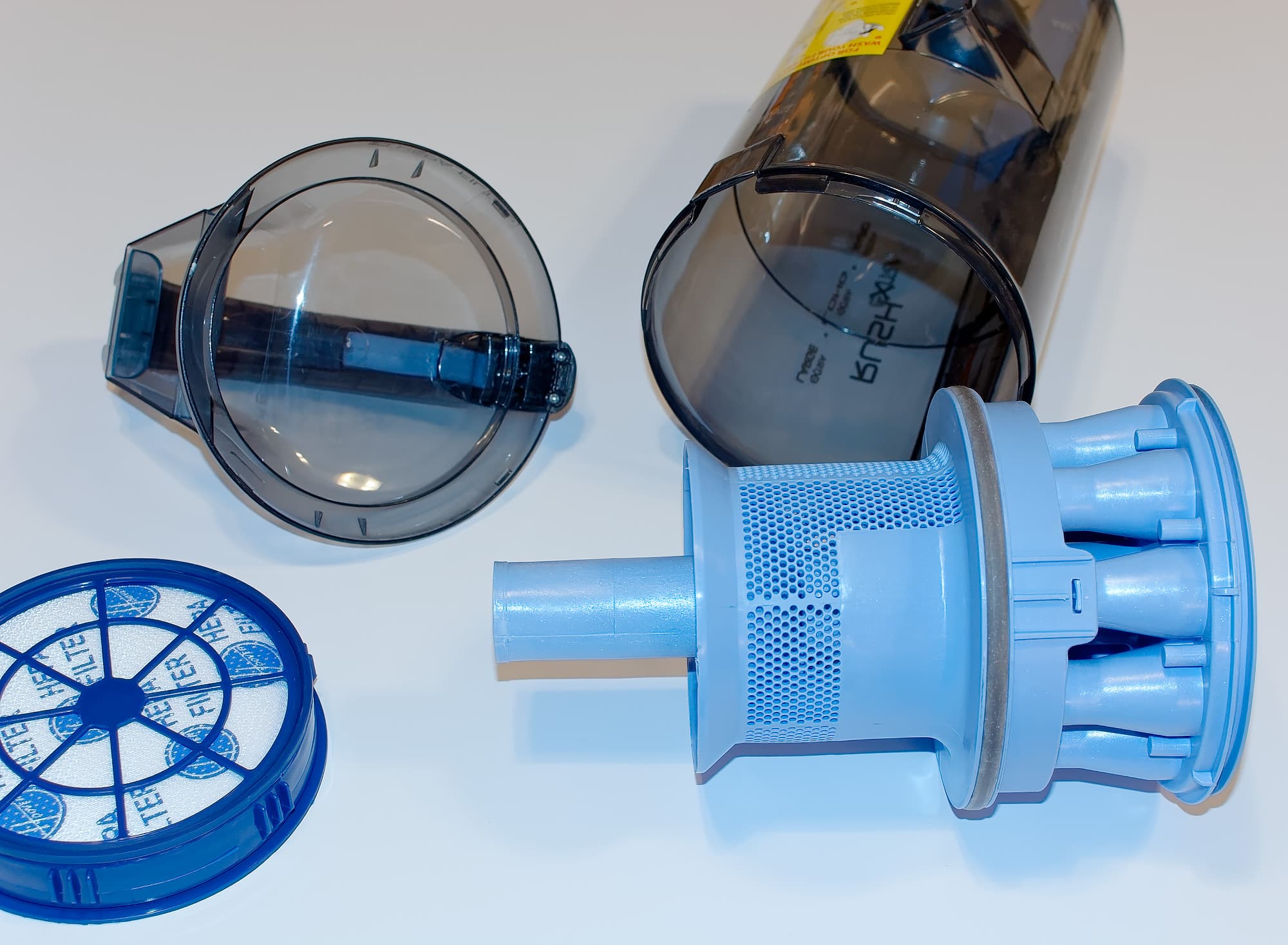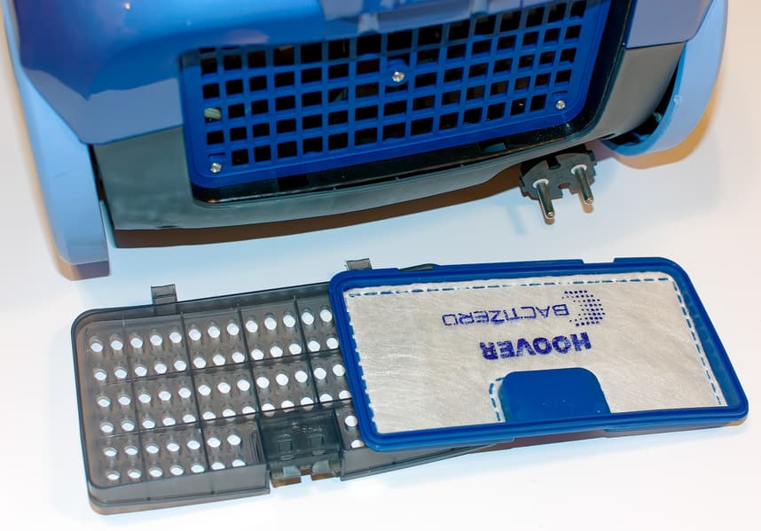 Согласно инструкции, оба фильтра можно мыть. Однако мы напоминаем, что наш опыт с HEPA-фильтрами менее позитивен: несколько процедур мойки существенно увеличивают их сопротивление проходящему воздуху, и, как следствие — снижают мощность всасывания. Поэтому мы рекомендуем их аккуратно «выстукивать», а не мыть.