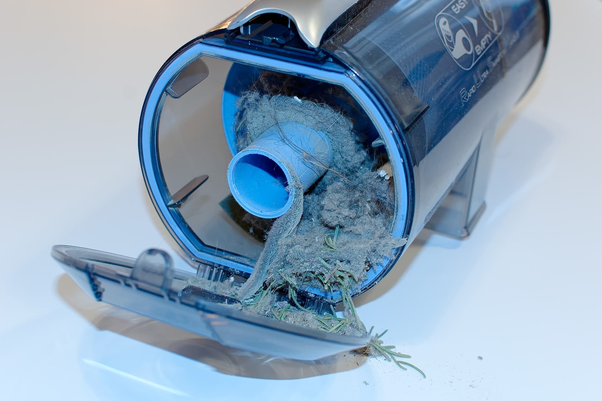 Циклонный фильтр работает хорошо: практически весь мусор и пыль оказываются в пылесборнике. До первого HEPA-фильтра каким-то образом добрался один-единственный волосок.