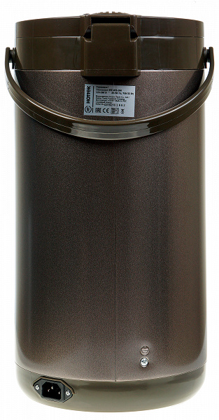 Максимальная потребляемая мощность в режиме кипячения — 730 Вт, в режиме поддержания температуры — 75 Вт, в ждущем режиме термопот потребляет 0,4 Вт. Отметим, что измеренная нами мощность в режиме поддержания температуры сильно отличается от указанной в паспорте (35 Вт).