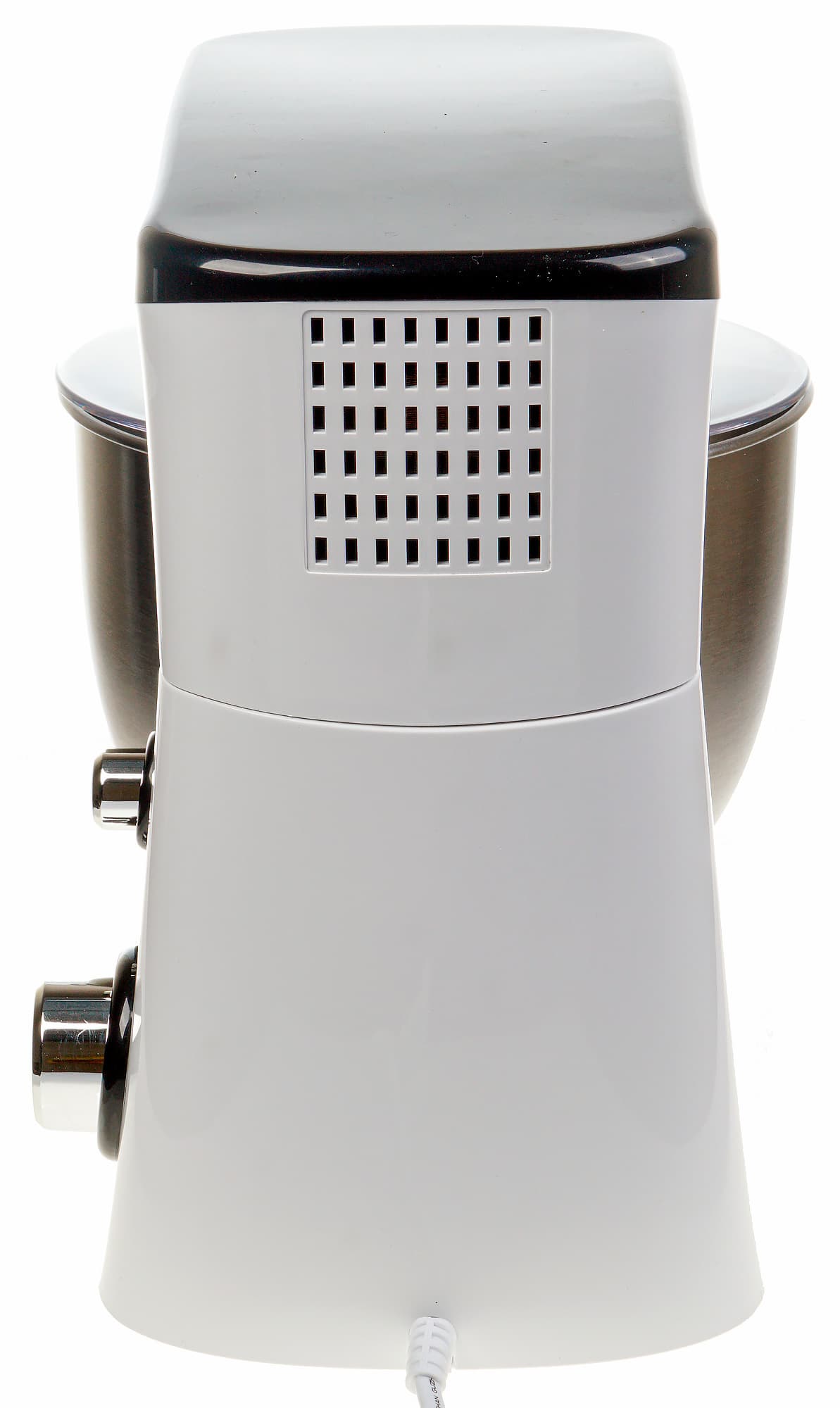 Правая боковая сторона миксера примечательна лишь наличием вентиляционных отверстий. В нижней части к корпусу присоединен шнур электропитания длиной в один метр. Отсеком для хранения или смотки шнура аппарат не оснащен.
