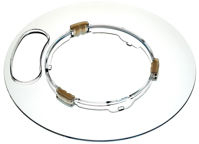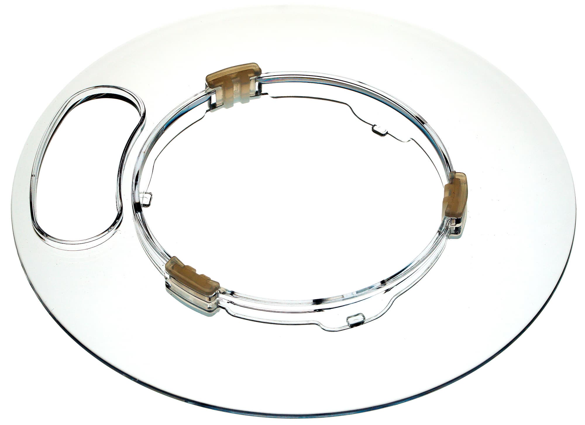 На выступающей части откидной головки закрепляется защитная крышка. Крышка изготовлена из прозрачного пластика, так что в ходе работы можно будет не только добавлять ингредиенты без остановки процесса взбивания или замеса, но и наблюдать за происходящим в чаше. Аксессуар плотно прилегает и надежно удерживается на моторном отсеке благодаря трем силиконовым уплотнителям.