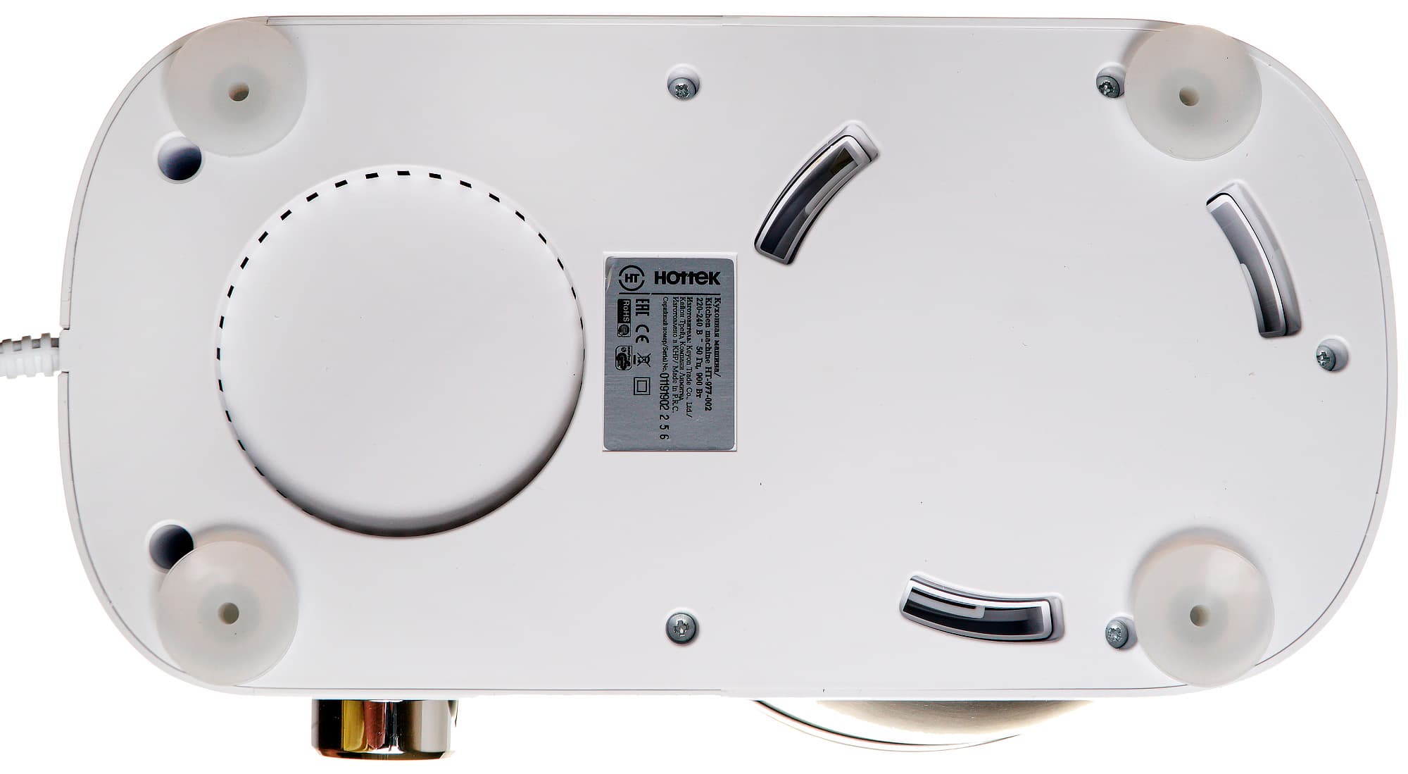 Визуальное знакомство с кухонной машиной Hottek HT-977-002 оставило у нас самые благоприятные впечатления: сборка прибора весьма аккуратна, материалы не выглядят дешевыми или некачественными, все стыки идеально подогнаны. Конструкция аппарата и способы фиксации чаши и насадок привычны и не вызывают затруднений.