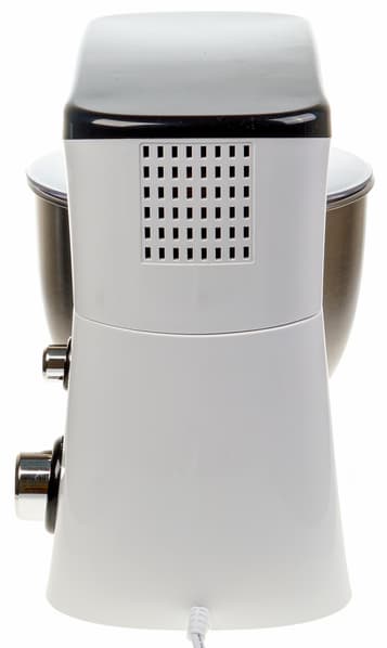 Объем чаши в 3,5 литра кажется нам оптимальным для эксплуатации в обычных условиях. Прибор удобен как для одного человека, так и для семьи с чадами и домочадцами. Так, за одну итерацию мы замесили в нем пельменное тесто весом в 778 г. В то же самое время миксер эффективно взбивает всего два белка. На тестах прибор продемонстрировал свои возможности по замесу плотного, дрожжевого и жидкого теста. С помощью насадки-лопатки было приготовлено картофельное пюре. Все результаты оценены на «хорошо» и «отлично».