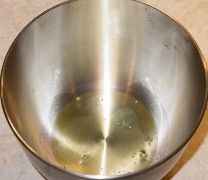 100 граммов — это три белка от яиц категории С1. Миксер небольшой, поэтому мы задали ему более сложную задачу и влили в чашу два белка от крупных яиц, что составило 75 граммов. Соответственно уменьшили количество сиропа: 150 г сахара и 75 г воды. Поставили варить сироп. Когда температура сиропа достигла 100 °C, приступили к взбиванию белков.