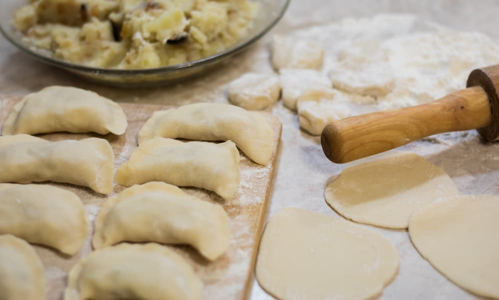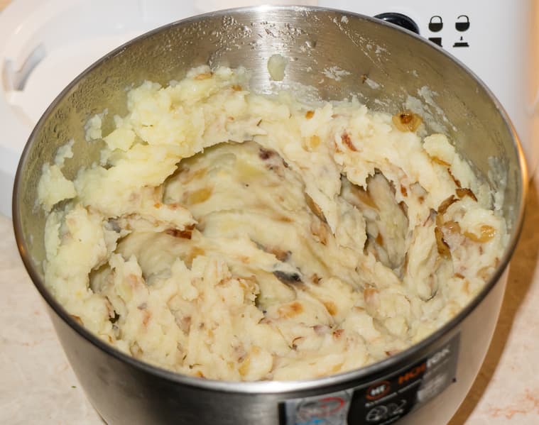 Итак, дрожжевое тесто мы уже сделали, и в ходе его приготовления возникли вопросы, которые требуют дополнительных тестов. Несомненно, чтобы проверить качество работы крюка, нужно приготовить плотное пресное тесто, а это значит паста, пельмени, чебуреки или манты, но манты у нас переходят из теста в тест — надоело. В то же время приготовление картофельного пюре — традиционный для планетарных миксеров тест, позволяющий оценить как работу лопатки для смешивания, так и возможности работы на низких оборотах. И тут нас осенило — вареники с картофелем!
