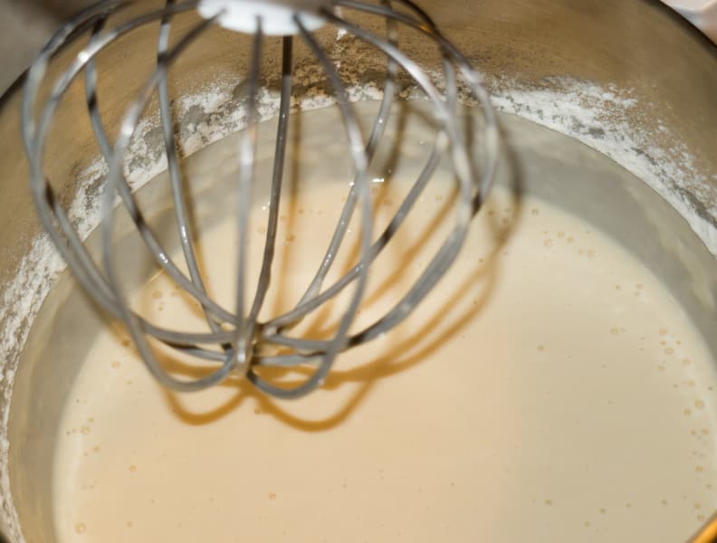 Для проверки качество смешивания с помощью венчика, приготовим тесто для блинов.