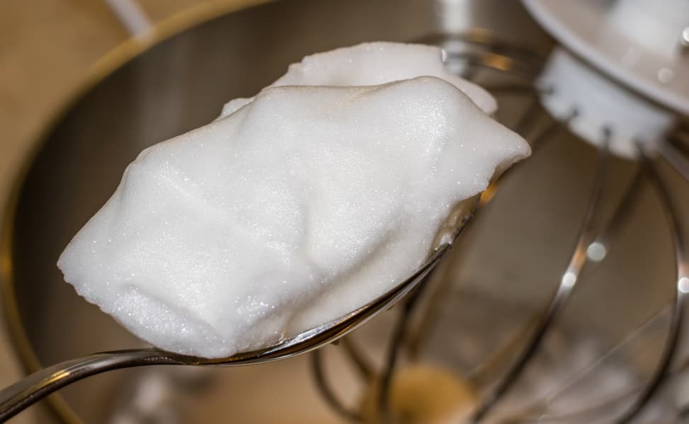 Технология приготовления итальянской меренги проста — сварить сахарный сироп, довести его до температуры в 121 °C, затем тонкой струйкой ввести во взбитые белки.