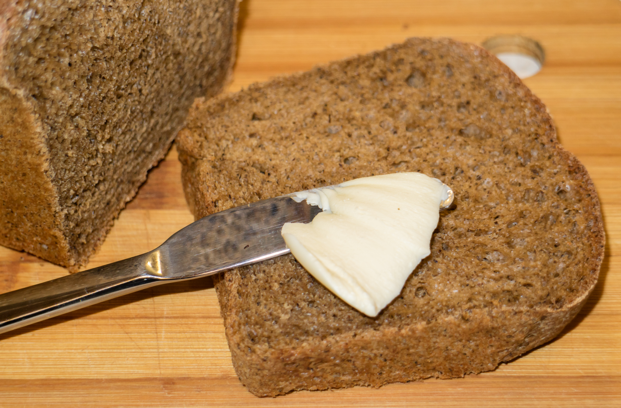 Буханка получилась хорошей: мякиш среднепористый, мягкий, легко возвращающийся при замятии в первоначальную форму. При нарезке хлеб крошится незначительно, не мнется.