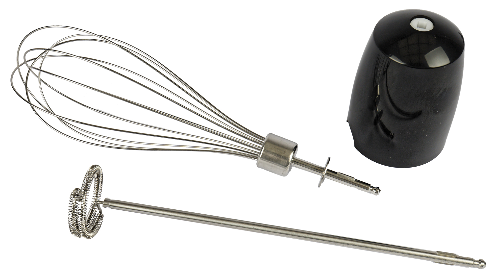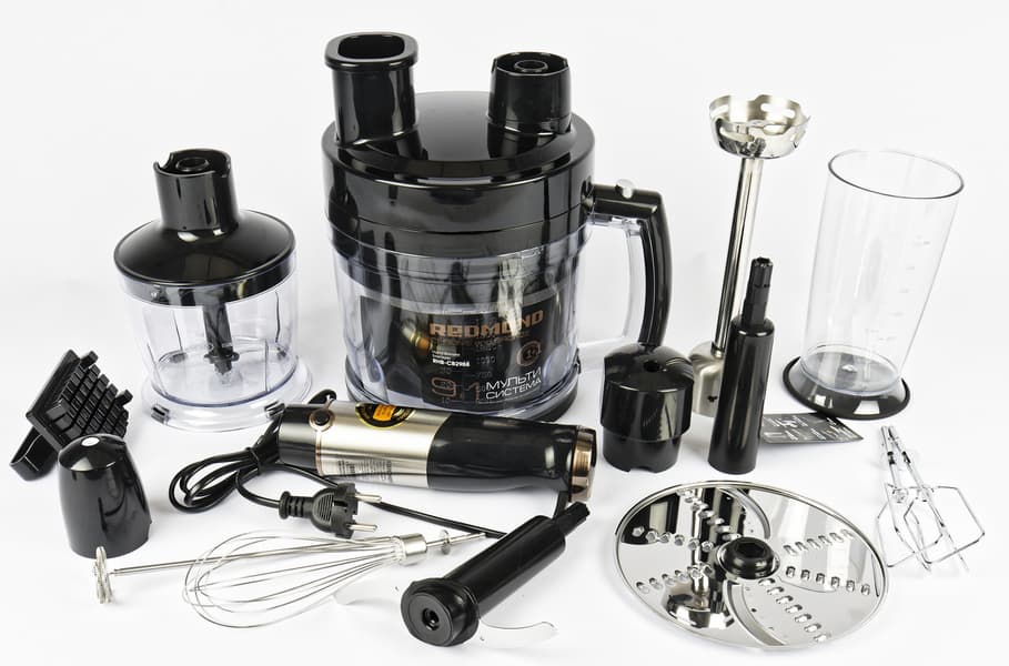 Ну что тут расписывать, казалось бы? В комплектации каждого погружного блендера — и простого, и «сто в одном» и заменяющего кухонный комбайн, есть насадка-венчик. Взбивай — и дело с концом. Но у нас был и отличный, и не совсем удачный опыт с очень хорошим прибором, поэтому можем дать некоторые рекомендации на примере многофункционального блендера Redmond RHB-CB2988 «9 в 1». Тестируя его и пытаясь приготовить тесто для бисквита, мы обнаружили, что классическая насадка при установке на моторный блок оказалась слишком длинной, поэтому взбивать ею яичную массу было неудобно. К тому же минимальная скорость для этой насадки явно слишком высока, поэтому содержимое стандартной широкой миски глубиной 9 см разлеталось по всей кухне даже на первой скорости и при наклоне емкости. То есть использовать венчик слишком мощного блендера удобно только в более глубокой посуде. Продолжили приготовление теста и воспользовались второй насадкой — миксером с двумя венчиками. Вот она справилась превосходно, но такая насадка есть далеко не у всех блендеров. Проще — вот правда — пользоваться обычным миксером с двумя венчиками. Это не совсем удобно в сравнении с миксером планетарным, потому что заняты руки и надо делать паузы в работе для добавления ингредиентов и чтобы дать передохнуть и остыть мотору, но длинная насадка-венчик для блендера может подвести при определенных условиях (слишком высокая минимальная скорость, слишком длинная насадка).
