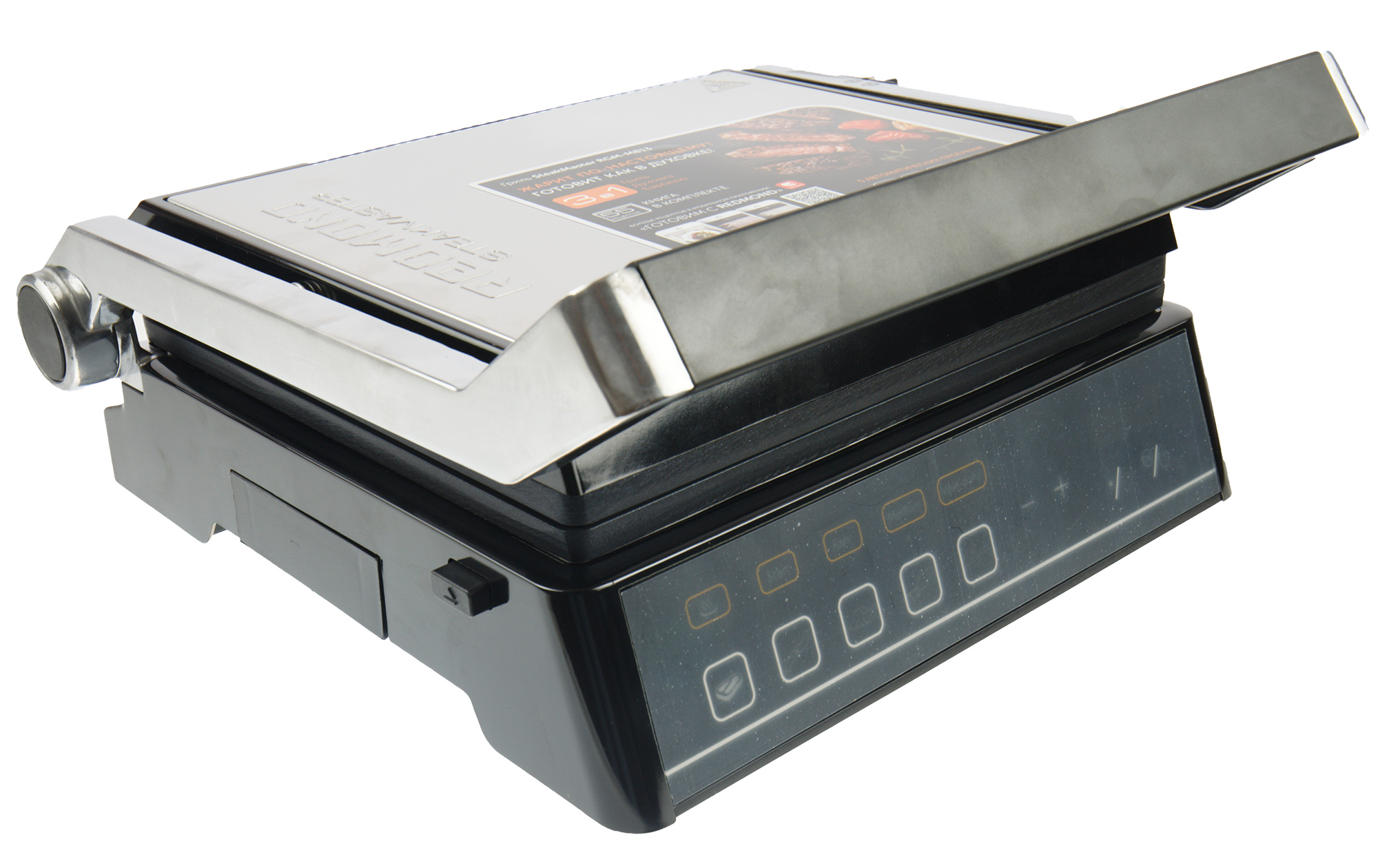 Пробовали мы печь бисквит и в электрогриле. Правда, не в обычном, а тоже в многофункциональном Redmond SteakMaster RGM-M813, способном, по заверениям производителя, заменить духовку. На рецепт бисквита из прилагающейся к устройству поваренной книги посмотрели с недоверием, но решили рискнуть и пекли его в форме из фольги 20 минут при температуре 170 градусов. Внешне он вышел совершенно бледным, но равномерно пропекся и оказался достаточно пышным и очень вкусным — отличной основой для тортика.
