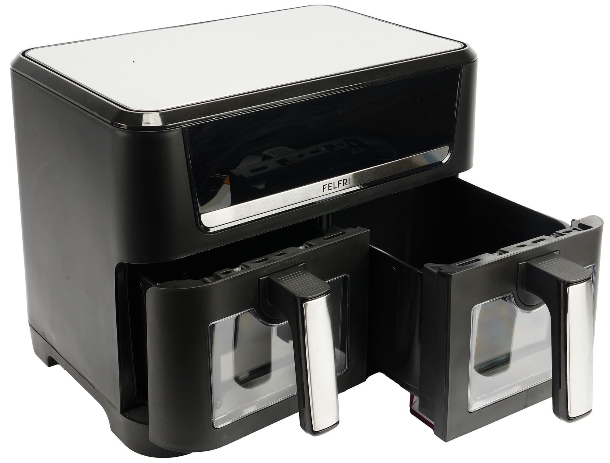 Есть модели с двумя корзинами, в которых можно готовить два разных блюда одновременно (например, гарнир и мясо, рыбу и круассаны), не смешивая запахи: Kitfort КТ-2250, Felfri FF‑AF‑04, Gressel GAF-1825, но надо учитывать, что корзины эти не очень большие: объемом от 4 до 5,5 л. Нередко для больших корзин обычных аэрогрилей предусмотрены разделители, чтобы блюда не смешивались, или решетки, чтобы готовить на двух уровнях.