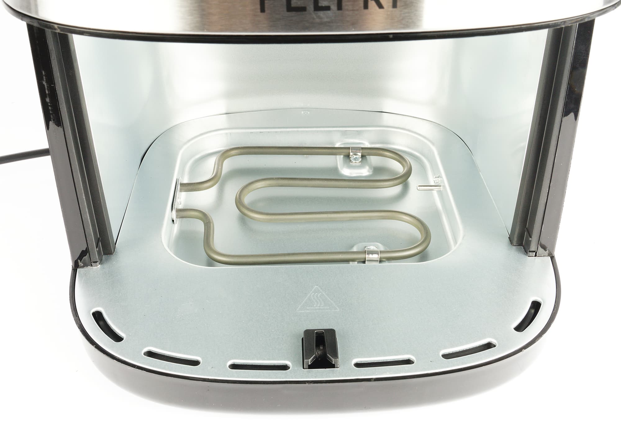 В некоторых моделях есть эти необязательные, но приятные и удобные дополнения. Например, у Redmond AG1900 есть подсветка рабочей зоны и окошко прямо в чаше — через него можно наблюдать за процессом и вовремя заметить, если блюдо готово или же продукты надо перевернуть. Кроме того, наличие окошка уменьшает теплопотери и повышает энергоэффективность устройства. У модели Redmond AG1901 окошко расположено выше корзины и можно смотреть немного сверху, у Felfri FF-AF-06, Redmond AG1900 и Polaris PAF 6006DW внизу.