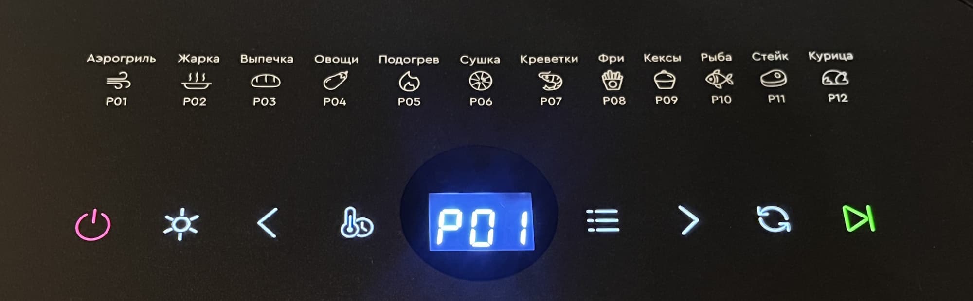 У всех аэрогрилей есть возможность установить температуру и время вручную в пользовательской программе и очень часто можно отредактировать параметры автопрограммы.